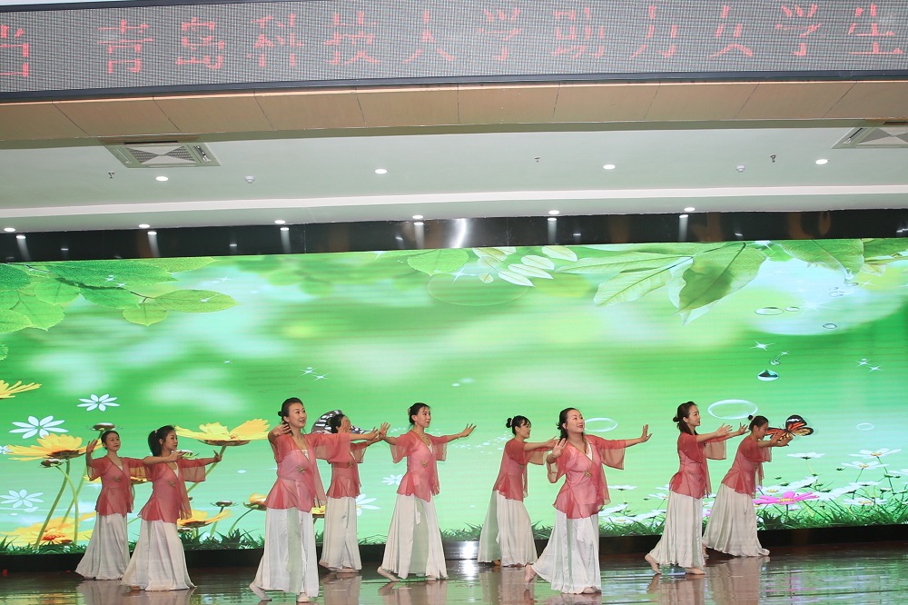会议在教职工海鸥舞蹈队展现的舞蹈《春风三月》里结束。
