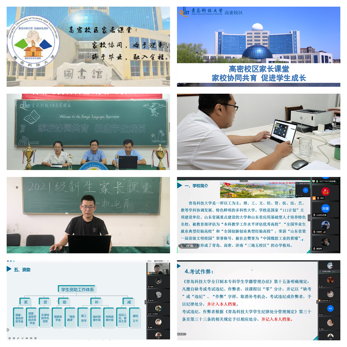 高密校区一直注重家校共育,连续通过新生家长见面会、期末家长会、一对一家校沟通和寒暑假实地家访等方式,不断丰富共育途径。为提前解决常态化疫情防控背景下家长所关心的开学问题,今年暑期,学工办将家长关心的问题汇编成了家长课堂宣讲课件、制作了新生家长手册向新生家长发布。各系搭建网络课堂平台,系主任结合本系的工作,进行了认真系统的备课和介绍。