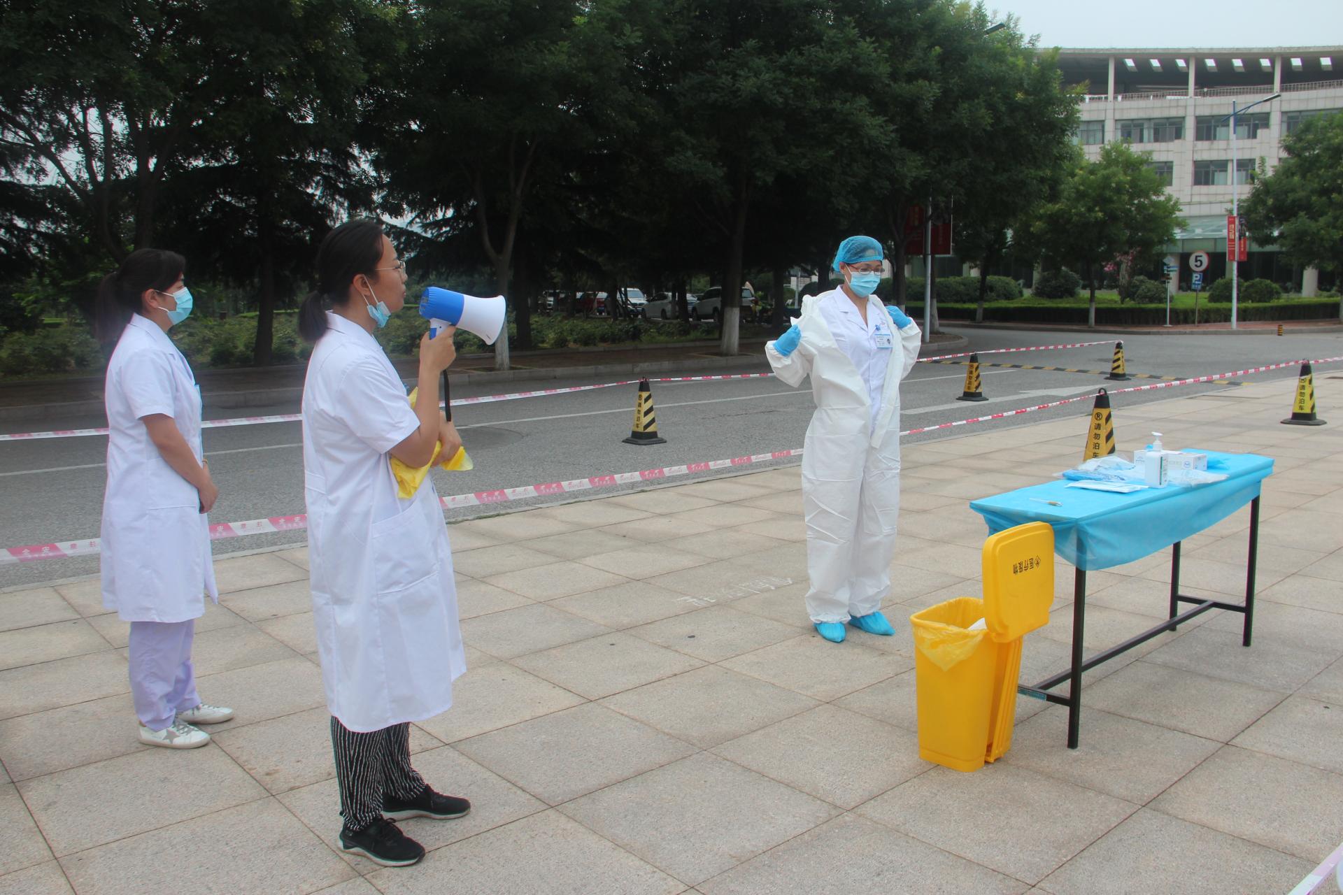 学生返校检测到位:根据上级要求,省外返校学生全部进行核酸检测。两三天内崂山、四方两校区近6000名学生从省外返校,检测任务异常繁重。检测期间,后勤管理处全员参与,从早晨七点一直忙碌到第二天凌晨两三点。最辛苦的还是校医院的医务人员,由于人员不足,只能分两组“三班倒”,上岗后就穿着厚重的防护服,在近30℃的高温下一干就是6个小时,不敢喝水、不能上厕所。校医院副院长高术华老师把刚上初中的两个孩子都交给老人照看,一心扑在工作上,白天黑夜“连轴转”。当别人问她累不累时,高术华回答:“累,当然是累,但我是一名共产党员,抗击疫情是我光荣的使命!”。
