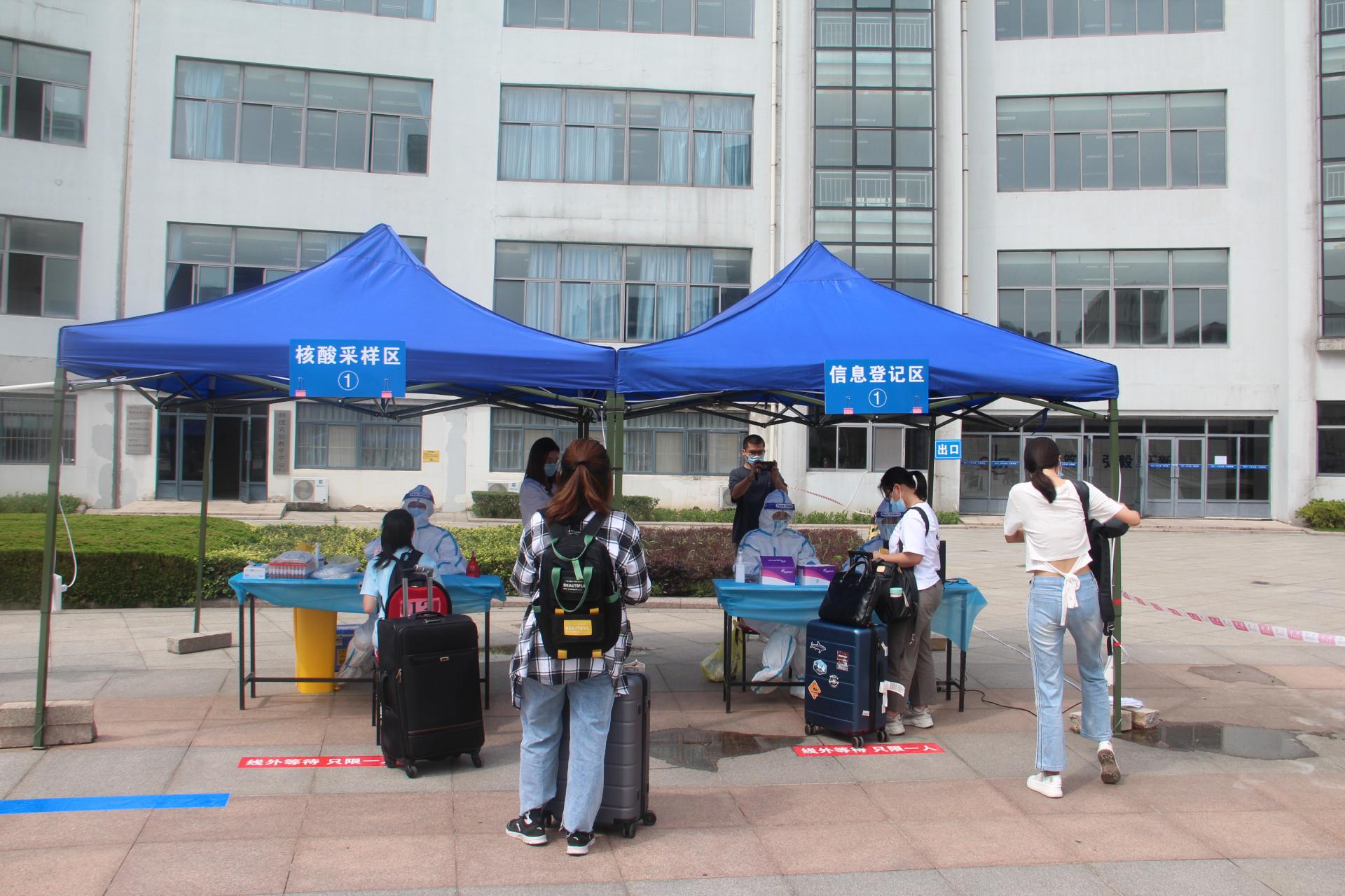 应急演练保障到位:为做好学生返校准备工作,确保工作平稳安全,后勤管理处制定了详细的学生返校报到检测的预案,召开接站工作培训会,为参与迎新的全体工作人员配发防疫物品,并反复推演学生返校流程,重点演练省外学生返校入校、核酸采样和等待场景,保证整个流程环环相扣,严密顺畅。由于省外学生抵青时间不尽相同,深夜返回的学生已无法进行核酸检测,为了保证学生安全,后勤处决定启用隔离观察区,晚上10点以后返回的学生全部在隔离观察区休息。后勤的党员、干部白天在校园担负迎新任务,晚上还轮流在隔离观察区值班,连续数日,却无一人叫苦叫累。