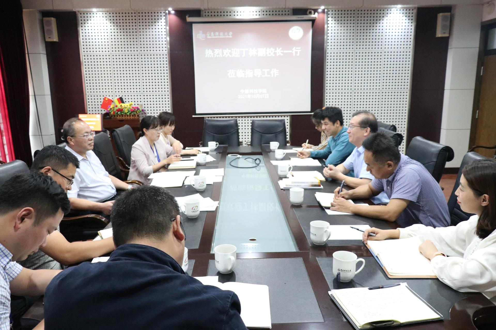 在中德科技学院,丁林听取了学院党建引领、学生工作、学风建设等方面工作汇报,对学院发展、学生工作特色等给予肯定。他表示,希望学院坚持走特色发展之路,不断提升学生工作对学校中外合作办学格局的贡献度;在疫情防控常态化背景下,遵循教育规律,维护良好教育教学秩序,守正创新,同心同德,群策群力,协同育人;坚持依法依规办学,注重培养学生法治思维,引导学生争做有德性、守契约、讲诚信的科大人。