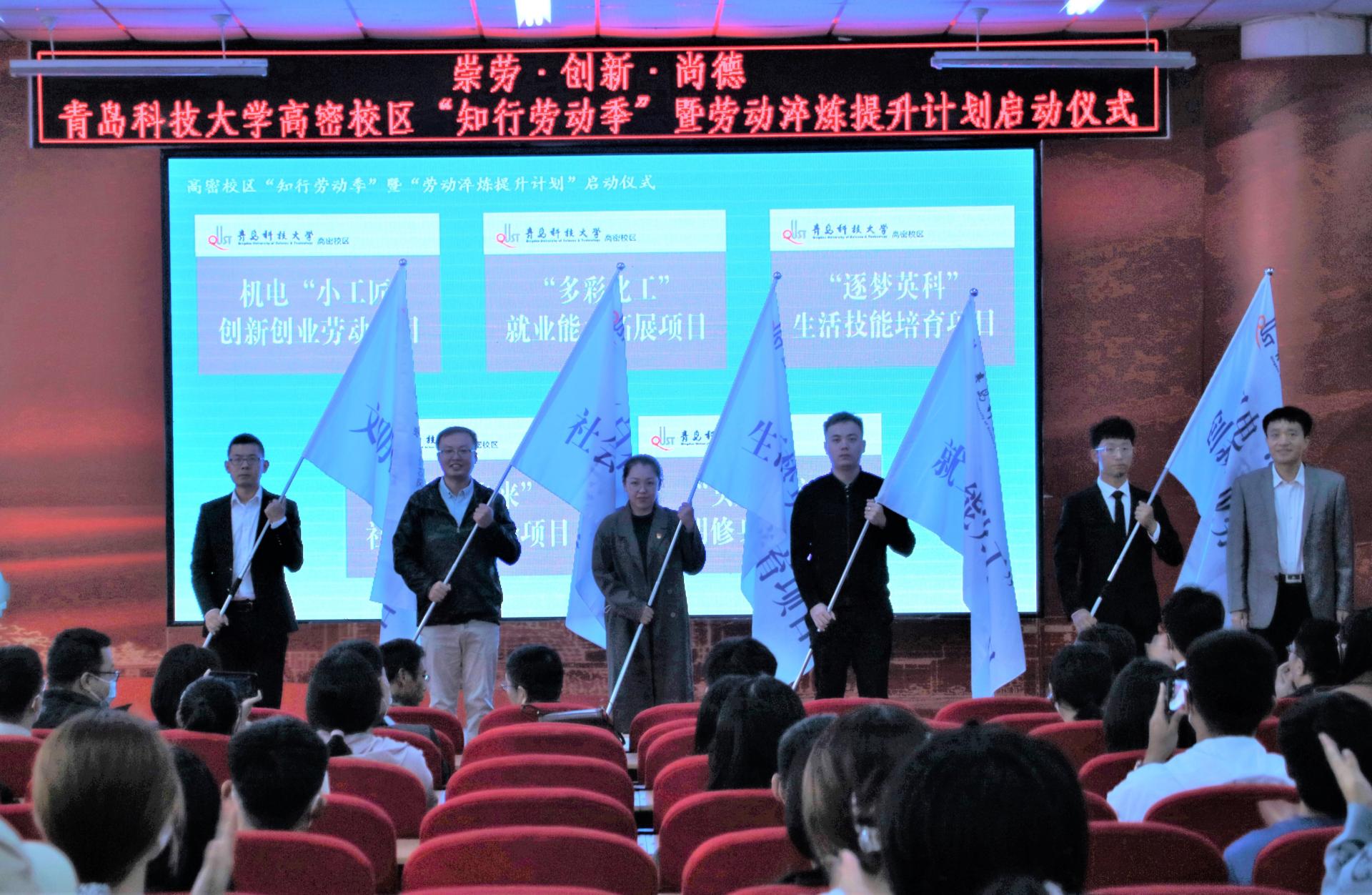 梁树清强调,高密校区要全面落实立德树人根本任务,以劳树德、以劳增智、以劳强体、以劳育美,全面提高大学生综合素质;要推进“课程化改革、项目化管理、精品化推进、公司化运作”的劳动教育模式,形成“项目驱动、品牌引领、覆盖校区”的劳动教育格局,打造青科大高密校区创新五育并举的新品牌;要将劳动教育理念贯穿教育教学的全过程,通过劳动教育提升道德意识、团结意识、责任意识、纪律意识和安全意识,强化劳动对个人成长的助推作用。王建民为各系及学生组织拟打造的特色劳动项目授旗。