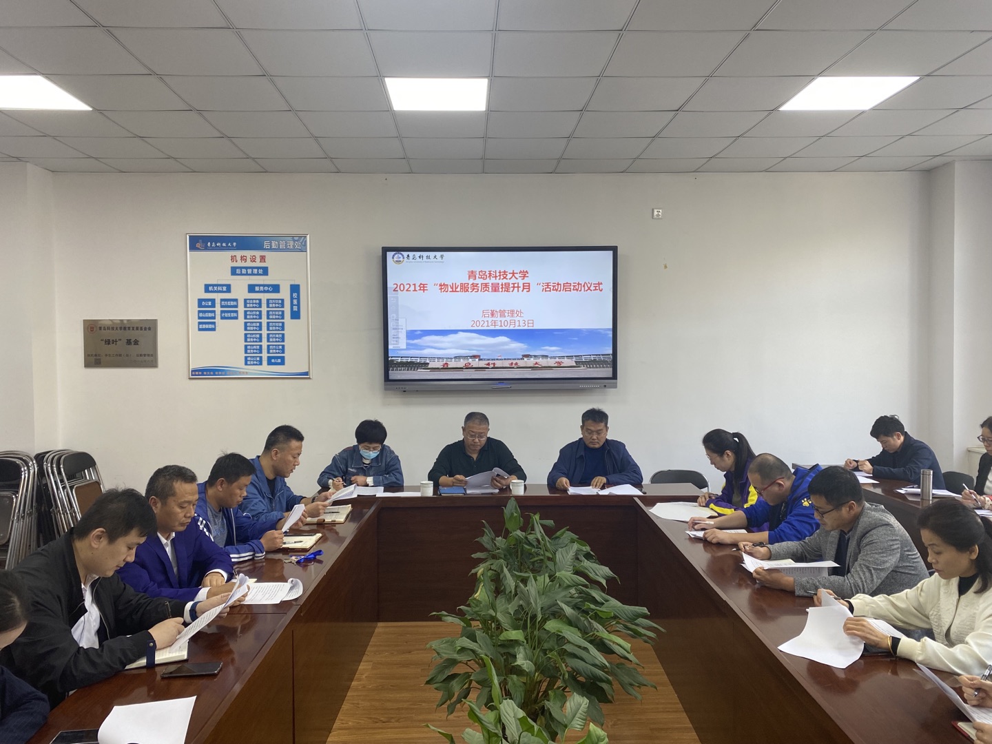 10月13日,beat365官方网站2021年“物业服务质量提升月”活动启动仪式在后勤楼四楼会议室召开。后勤管理处处长郭永出席启动仪式并讲话。后勤两校区校舍中心、公寓中心、物业公司及相关服务项目负责人参加会议。
