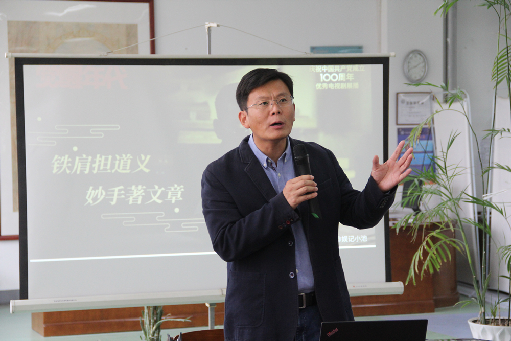 10月26日下午,图书馆党总支在崂山校区图书馆三楼期刊阅览室举行党建专题报告会,邀请传媒学院教授刘耀辉作题为《党建引领 以和致衡》专题报告。