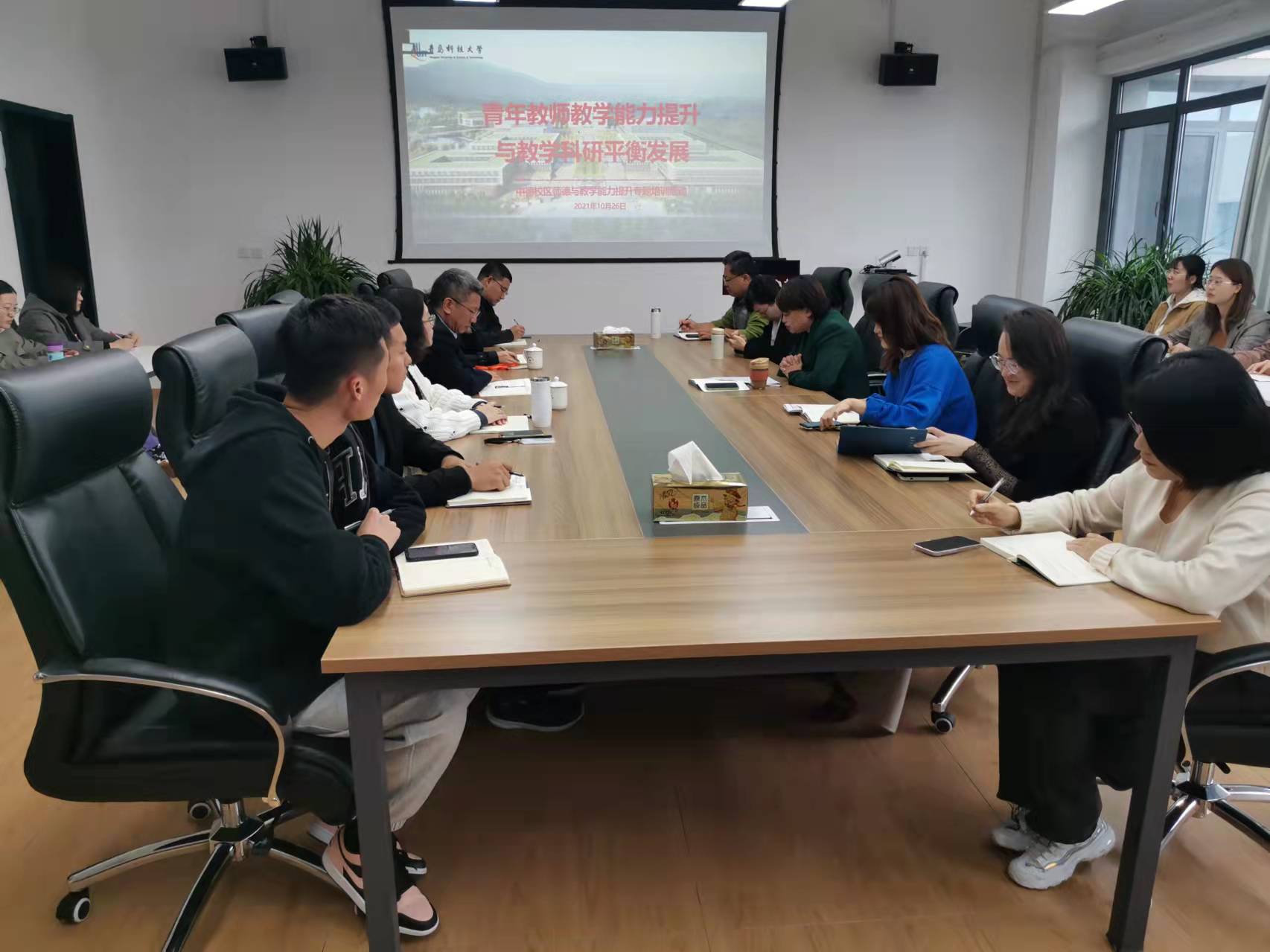 10月26日下午,师德与教学能力提升专题培训活动在中德校区J402会议室举行,活动邀请山东省教学名师、经济与管理学院教授董华作题为《青年教师教学技能提升与教学科研关系的平衡》的专题报告。