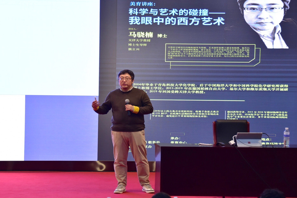 11月3日,学校美育主题讲座在崂山校区第三报告厅举行,邀请天津大学教授马骁楠作题为《我眼中的西方艺术——以德、法、意为例》的主题报告,学校党委常委、副校长丁林出席活动。