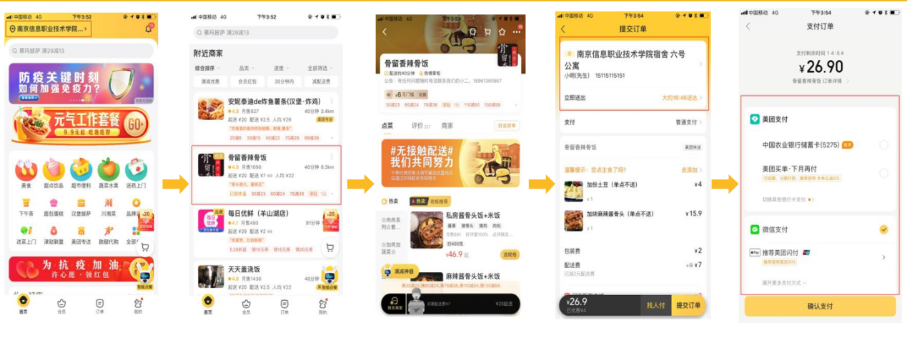 根据学校师生不断变化的就餐服务需求和饮食习惯,从解决师生校园生活实际问题着手,后勤饮食服务保障工作积极推进数字校园“智慧餐厅”建设,开启了校内食堂“校园网络订餐”服务系统。该系统使用“美团外卖”订餐服务平台,采用“线上订餐,线下取餐”模式,师生可以通过智能手机端登陆“22315数字后勤”微信公众号菜单项“网络订餐”、“美团外卖APP”等方式进行线上订餐,食堂档口自取、食堂以外区域手机扫码开启取餐柜等方式快捷取餐。