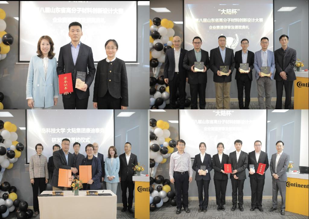 11月18日,由山东省科学技术协会、山东省教育厅、共青团山东省委、山东省发展和改革委员会、山东省工业和信息化厅、山东省人力资源和社会保障厅联合主办,青岛市科协、学校高分子科学与工程学院承办的“大陆杯”第八届山东省大学生高分子材料创新设计大赛企业赛道决赛及颁奖典礼在大陆集团康迪泰克青岛工厂举行。高分子科学与工程学院院长闫业海,党委书记孙洪广及相关负责人,参赛项目团队师生参加了活动。