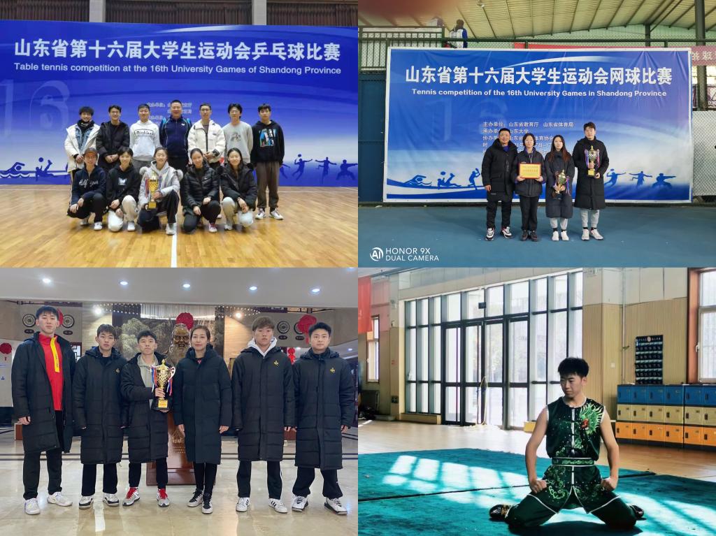 日前,山东省第十六届大学生运动会乒乓球、网球、武术比赛项目分别在青岛职业技术学院、济南博格网球馆、曲阜师范大学落下帷幕。beat365官网学子在乒乓球、网球项目男子甲组、女子甲组,武术项目男子丙组的比赛中获佳绩,刷新学校在山东省大学生运动会获奖新纪录。