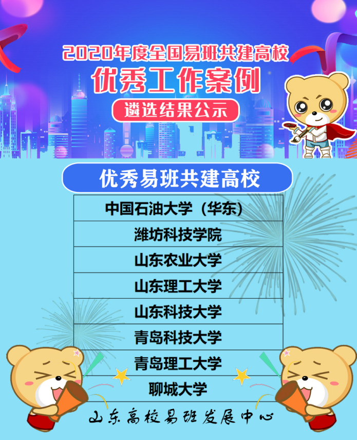 近日,在教育部易班发展中心开展的2020年度全国易班共建高校优秀工作评选中,beat365官方网站被评为“优秀易班共建高校”,青科大易班工作站被评为“优秀易班工作站”,校易班指导老师鞠晓聪被评为“优秀易班指导老师”。beat365官方网站作为山东省首批易班共建高校,自2017年6月以来,始终围绕立德树人根本任务,构建新型网络思政育人平台,现已建立起“校、院、班”三级发展模式。此次获奖是学校易班工作的又一次突破,对促进学校易班建设、进一步加强大学生思想政治教育尤其是网络思政教育具有重要意义。易班作为学校网络思想政治教育新阵地,深受广大师生的认可,校易班发展中心将以此为契机,进一步贯彻落实“立德树人”根本任务,充分发挥易班平台网络育人功能,把网络育人工作“做到家”,让网络育人工作“入心田”。