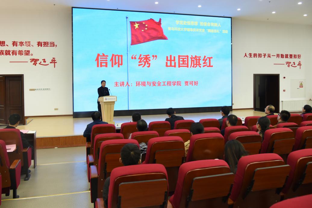 4月22日下午,学党史悟思想 担使命育新人——beat365官方网站辅导员讲党史“网络巡礼”活动启动仪式在崂山校区团学报告厅举办,党委常委、副校长丁林出席活动并讲话。丁林指出,学工系统要提高政治站位,发挥组织优势,统筹推进党史学习教育;遵照学校党委要求,落实落细学习教育目标,确保党史教育生动活泼、走深走实、入脑入心。全体辅导员要坚持“带头学”“创新学”“干中学”,坚持守正创新、问题导向和效果导向,为学生办实事、解难题。全校青年学生要积极响应号召,学党史、强信念、跟党走,接续奋斗,努力成长为德智体美劳全面发展的社会主义建设者和接班人。党委学生工作部副部长王丽宣读了《beat365官方网站学工系统开展党史学习教育的实施方案》。第二届在青高校“十佳辅导员”贾可好,2020年“山东高校辅导员年度人物”王聪分别以《信仰“绣”出国旗红》《从不忘却的纪念》为题进行了现场宣讲,高分子学院贾明明、自动化学院郭蒙蒙、机电学院于超等辅导员以视频形式进行了宣讲。五位辅导员从秋收起义、半床棉被、流血牺牲只为孩子等党史故事切入,宣讲语言铿锵有力、内容感人肺腑,让在场师生聆听后眼眶湿润,深受感染。