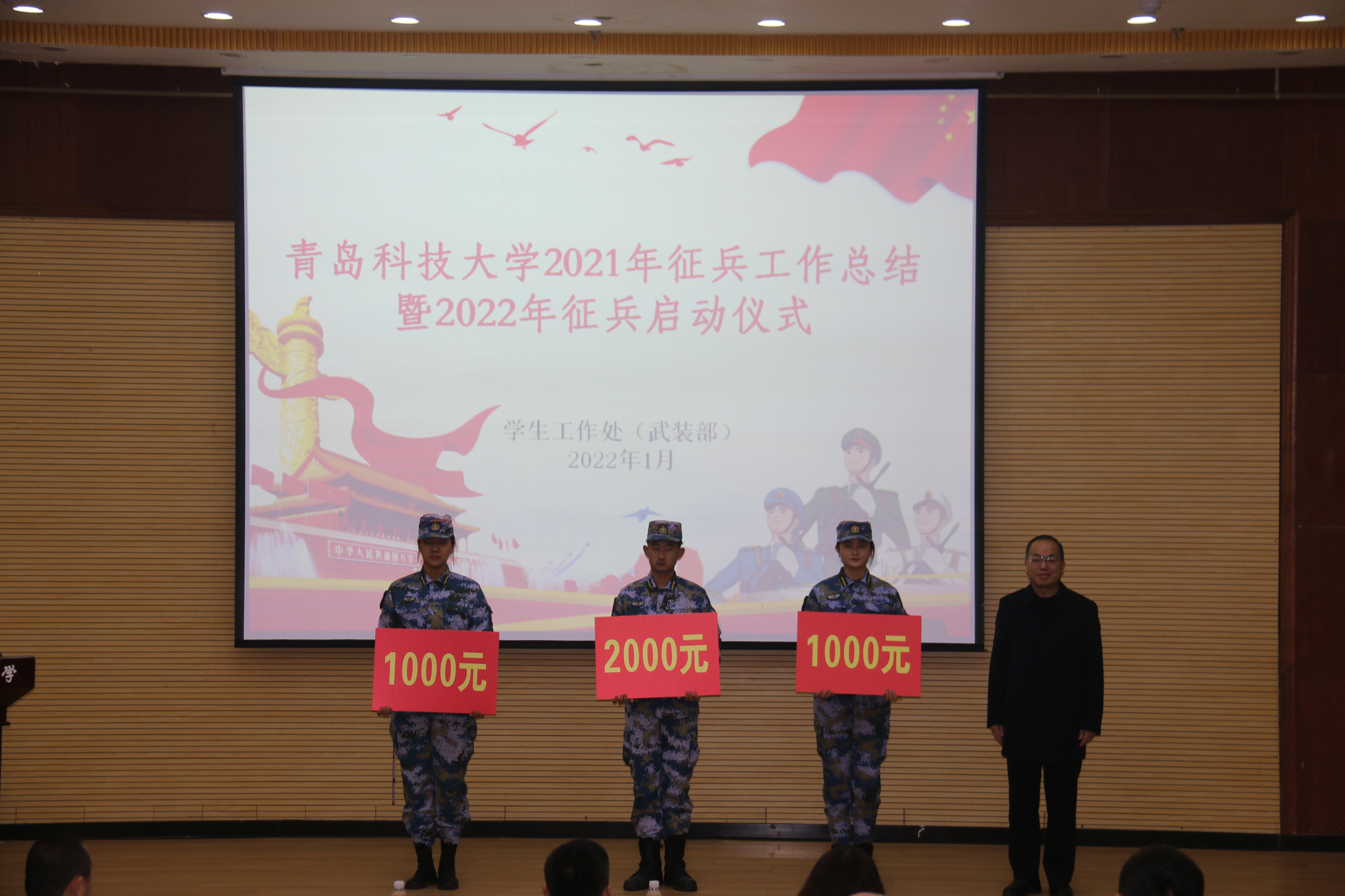 1月7日下午,学校2021年征兵工作总结表彰暨2022年征兵工作启动仪式在崂山校区第一报告厅举行。学校党委常委、副校长丁林出席会议并宣布2022年征兵工作启动。青岛警备区动员处处长陈兵、市北区人武部副部长刘伟杰,学校相关职能部门负责人、学院分管学生工作书记、征兵工作联系人以及应征报名学生代表参加活动。会议由学生工作部副部长李华主持。