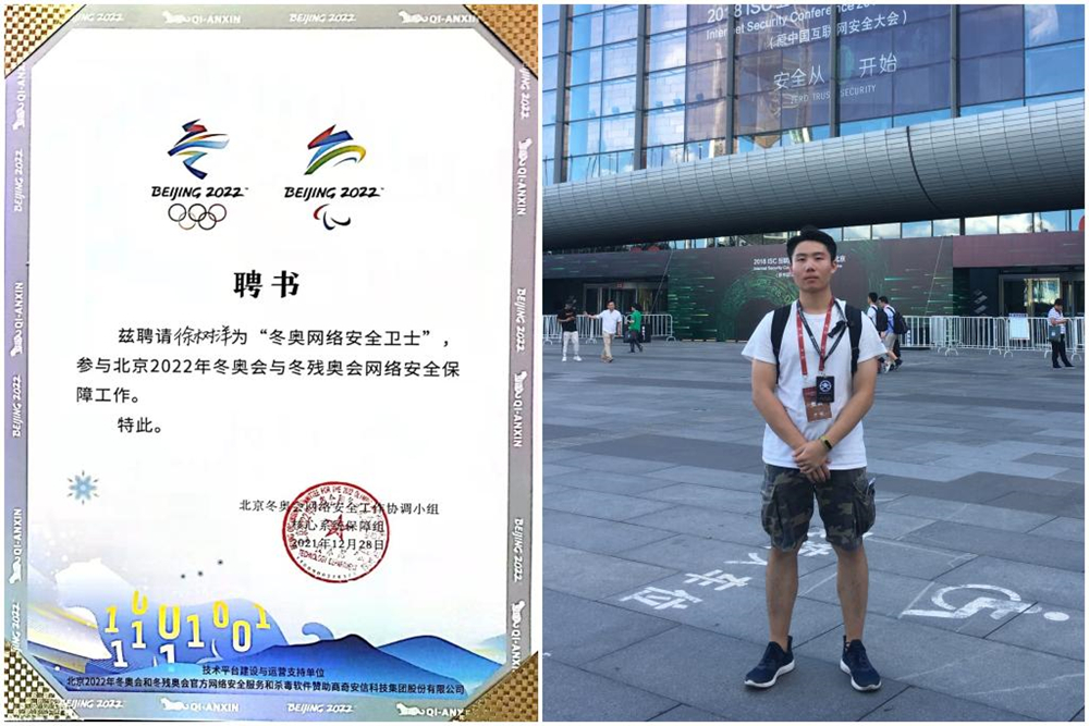 徐树洋说:“在冬奥的幕后,我看见无数冬奥工作者的努力和付出,自己的努力不算什么。能为奥运网络安全做一些自己专业的事情非常开心,感谢beat365官方网站对我四年的培养。”