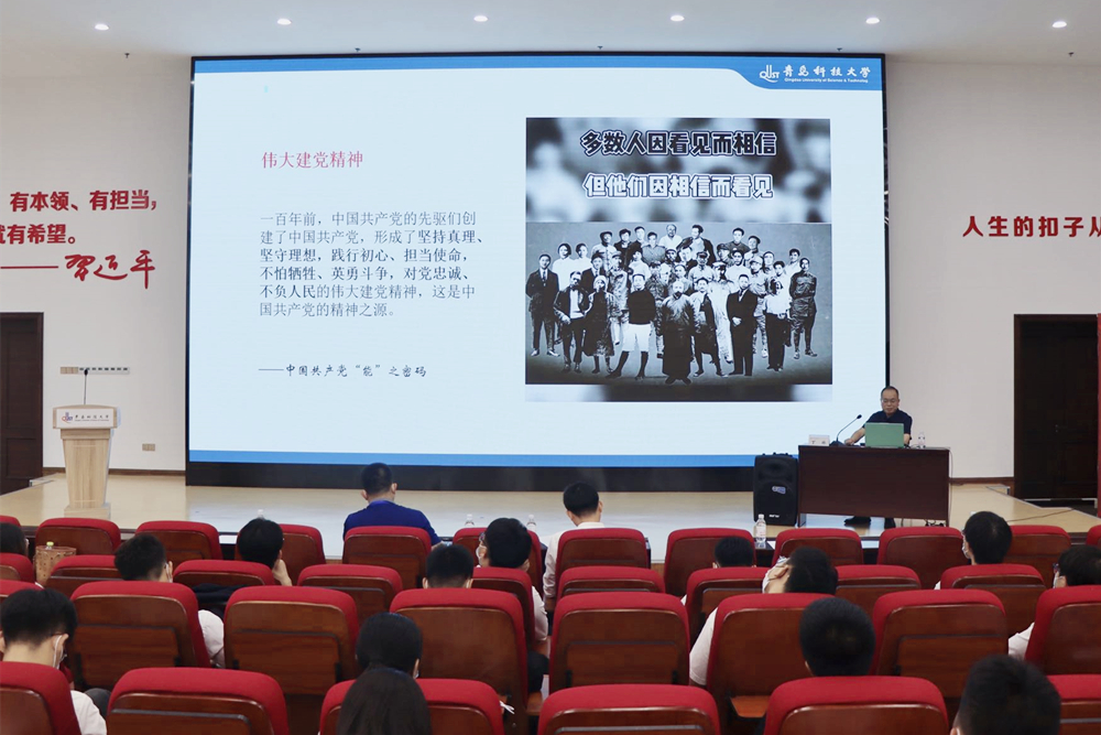 6月28日下午,学校“青马工程”党史学习教育专题团课在崂山校区团学报告厅举行,党委常委、副校长丁林以《汲取历史智慧坚定历史自信——党的三个历史决议之学习感悟》为题讲授党史学习教育专题团课,校团委书记毛常明主持团课。