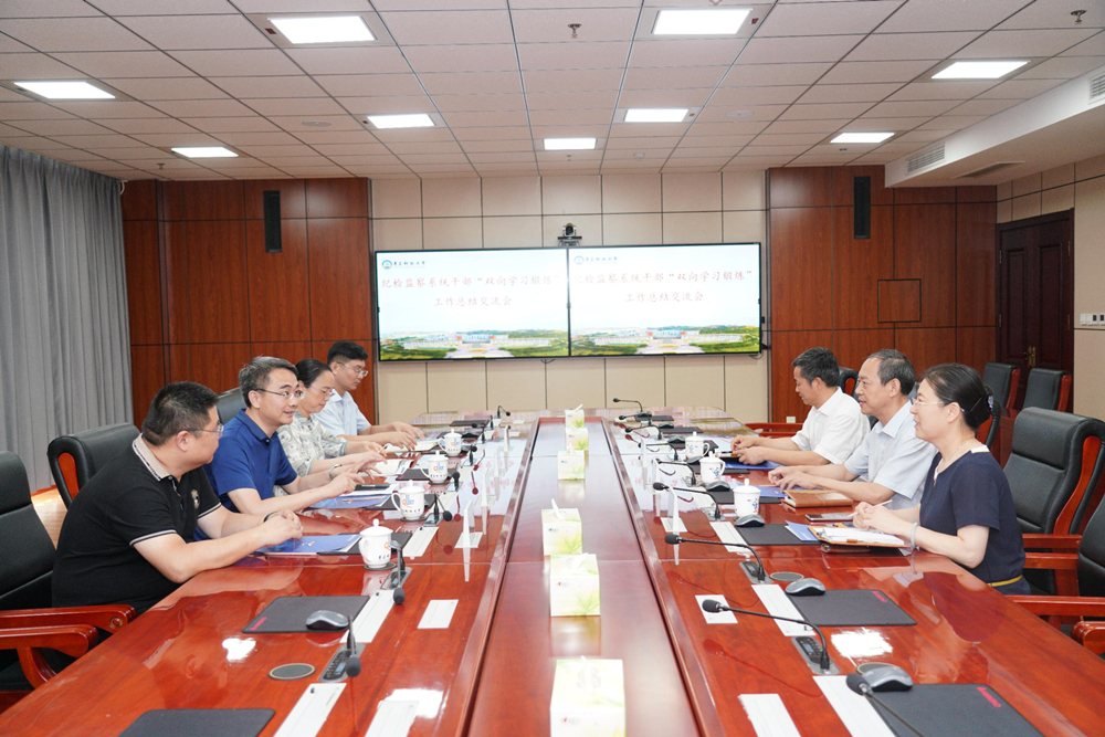 8月3日,beat365官网第三批全省纪检监察系统干部“双向学习锻炼”工作总结交流会在综合服务楼6015会议室举行。学校纪委书记、监察专员刘明永,崂山区委常委、纪委书记刘文建一行3人及学校纪检监察机关负责人出席交流会。