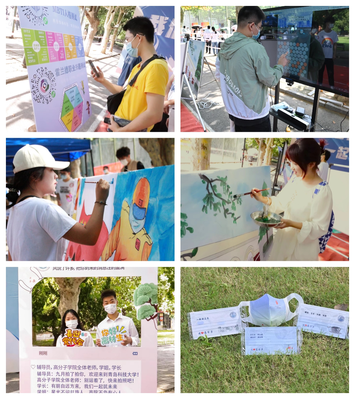 逐梦飞翔——五育融合,追梦前行。为使新生养成知行合一的良好习惯,将思想转化为行动,把功夫落实到实践,进一步发挥学院“学在高分子,成就高材生”学生工作品牌效能,学院多措并举,引导新生积极逐梦。在“德”上下功夫,组织“圈圈”心意套圈活动,将党的知识答题与流行的套圈活动相结合,在娱乐中强化思政教育,创设“套圈思政”新亮点,在学院范围内充分营造喜迎二十大的浓厚氛围;在“智”上下功夫,现场播放学院及专业宣传片,展示2022届考研优异成绩,进一步凸显学风建设成果,让新生在优秀榜样中择“星”而追,形成目标激励;在“体”上下功夫,充分融入体育思政理念,组织“蓄势起跳,跃橡未来”——摸高大比拼、一分钟跳绳、一分钟踢毽子等活动;在“美”上下功夫,重点围绕环境美育、活动美育,用心用力用情深化迎新活动内涵,合理设计迎新现场布局,美化迎新现场环境,保持迎新现场的干净整洁,便捷高效,实现环境美、活动美的育人效果;在“劳”上下功夫,积极落实学校学生宿舍环境卫生集中整治工作要求,提前为新生宿舍安排定制桌贴、绿萝及香薰,培养积极劳动意识,共建整洁校园环境。