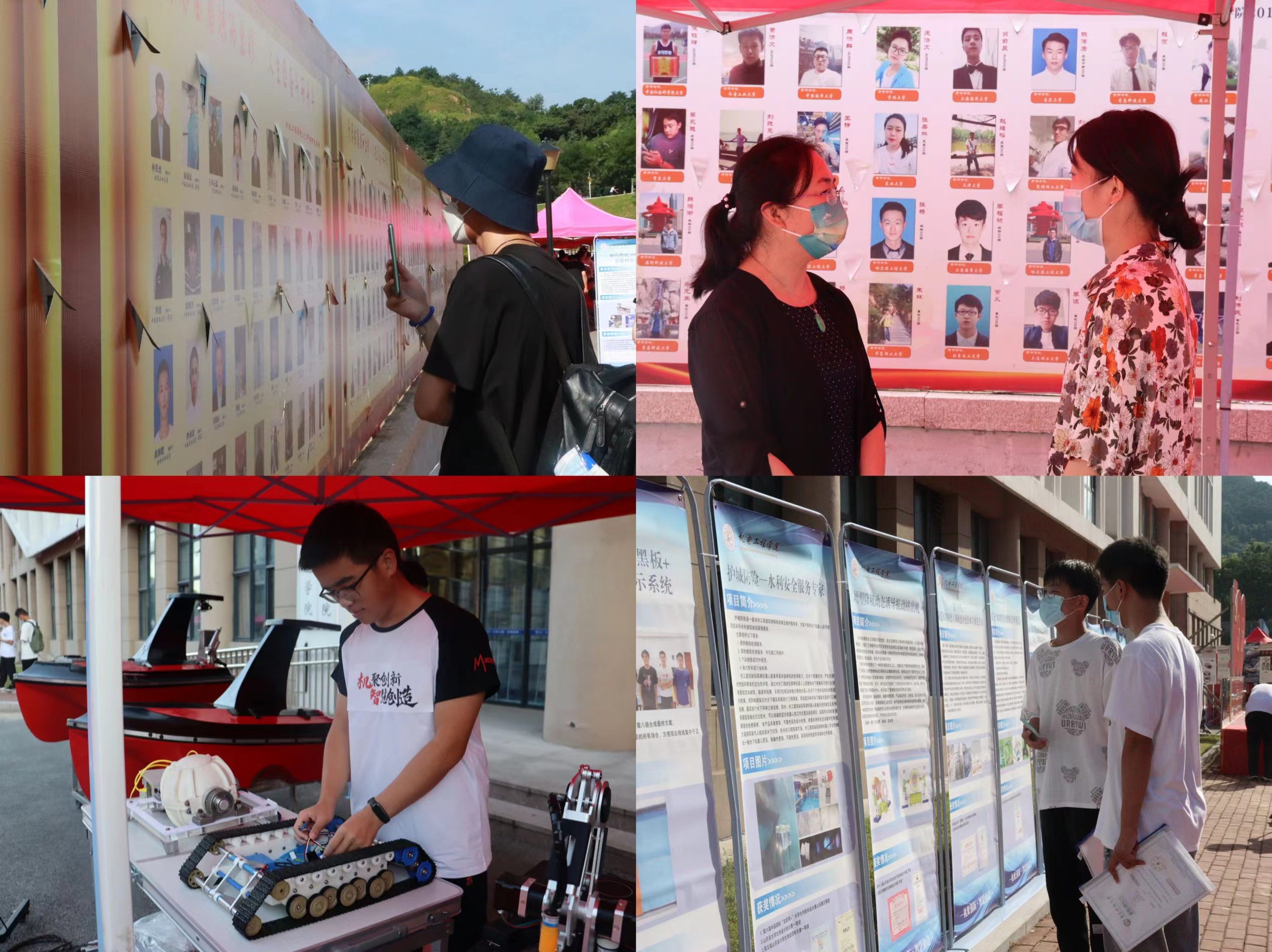 用行导航,科学、精准、示范,强化专业创新素养。为发挥专业育人特性以及立德树人的示范导向作用,学院在迎新工作点设置“院长面对面”,院长何燕等院领导为新生现场解答专业学习疑惑,帮助了解所学专业方向、学术前沿和发展前景;设置考研优秀学子光荣榜,展示学院近三届优秀考研学子,为新生树立朋辈学业榜样;在学生科创成果展示区,有中国国际“互联网+”大学生创新创业大赛国家级铜奖作品《智行千里——未来商用无人艇行业定义者》,“挑战杯”红色专项全国特等奖《“100+10+1”忆党史铭党恩·怀党志:建党100年,逐浪新征程》,全国大学生节能减排社会实践与科技竞赛特等奖作品《“氨动力”混合氨燃料型车辆动力系统》和中国高校智能机器人创意大赛一等奖作品《魔方机器人》等项目作品,展现了学院青年学子昂扬的创新活力,以此引导新生在科技创新中磨练本领、增长才干,发出“科创先行,强国有我”的最强音。学院用领航力量、朋辈榜样、优秀成果为新生开展了入学第一课,着力夯实学生的思想价值引领、学业成才指导和职业发展规划。