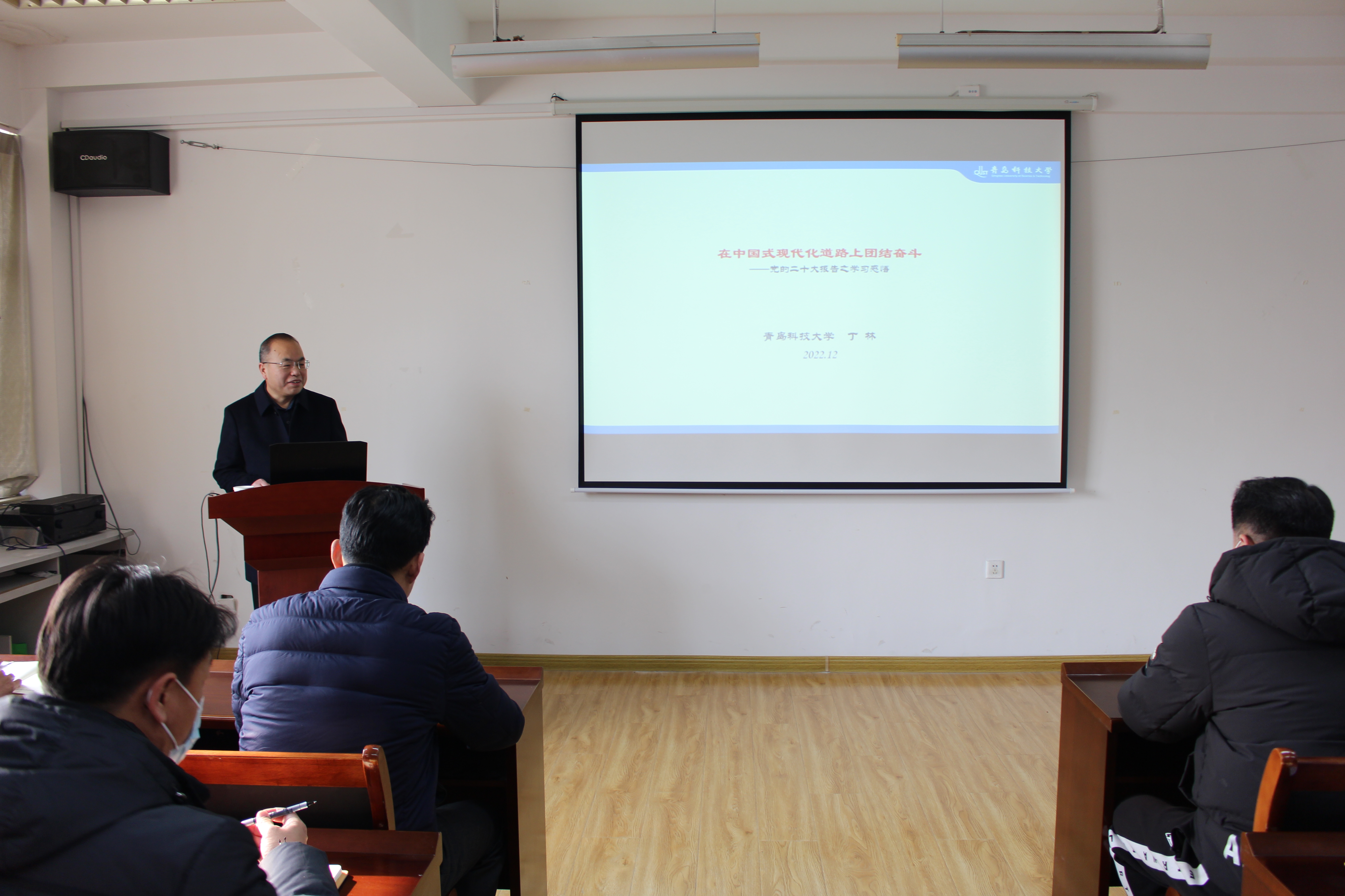 为深入学习贯彻党的二十大精神,根据学校关于党的二十大精神学习宣讲要求,12月6日,学校党委常委、副校长丁林以《在中国式现代化道路上团结奋斗》为题目在体育学院会议室为全体师生党员讲授贯彻党的二十大精神专题党课。体育学院党总支书记、院长张霄主持本次报告会。