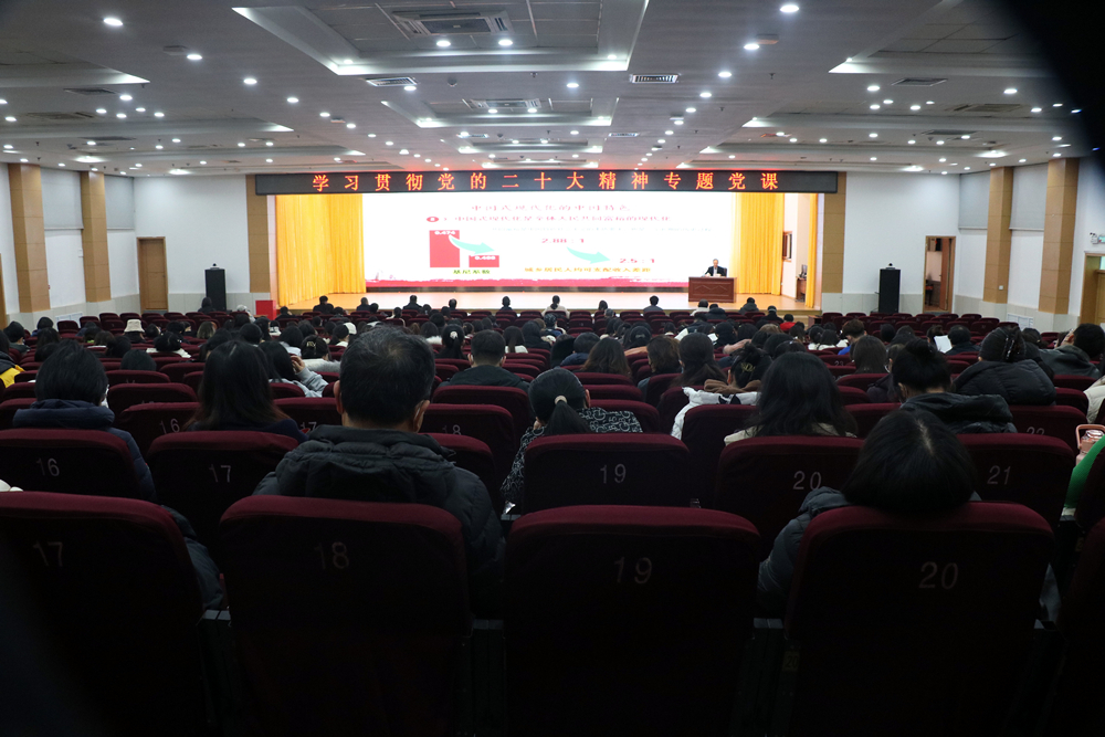 12月6日下午,学校党委常委、纪委书记、省监委驻beat365官方网站监察专员刘明永在崂山校区第二报告厅为传媒学院、法学院和外国语学院的全体师生党员开展学习贯彻党的二十大精神专题党课。