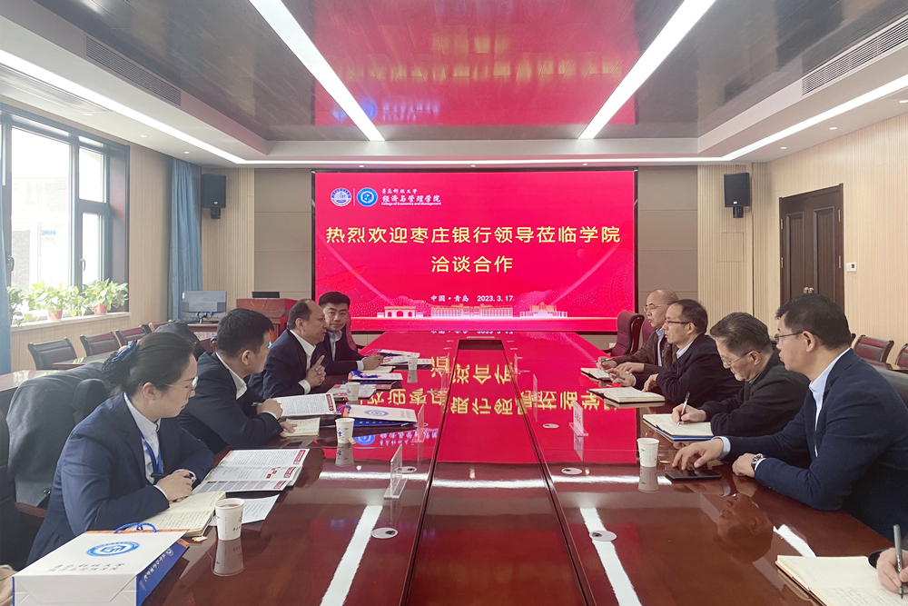3月17日上午,枣庄银行党委副书记、监事长沙雪斌,党委委员、人力资源部总经理马云飞,枣庄市委组织部机关党委专职副书记王振及相关工作人员一行来到经管学院洽谈校地融合MBA班合作项目。经管学院党委书记李德成、院长李勋来、正处级组织员王成果,学校枣庄融合创新发展中心主任曲明出席洽谈会。