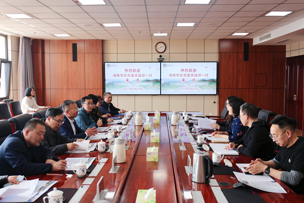3月29日,在潍坊学院党委统战部分管日常工作的副部长郭建伟的带领下,潍坊学院民主党派基层组织、统战团体负责人一行12人来校交流。学校党委常委、统战部部长秦姣会见了来宾并出席座谈会。