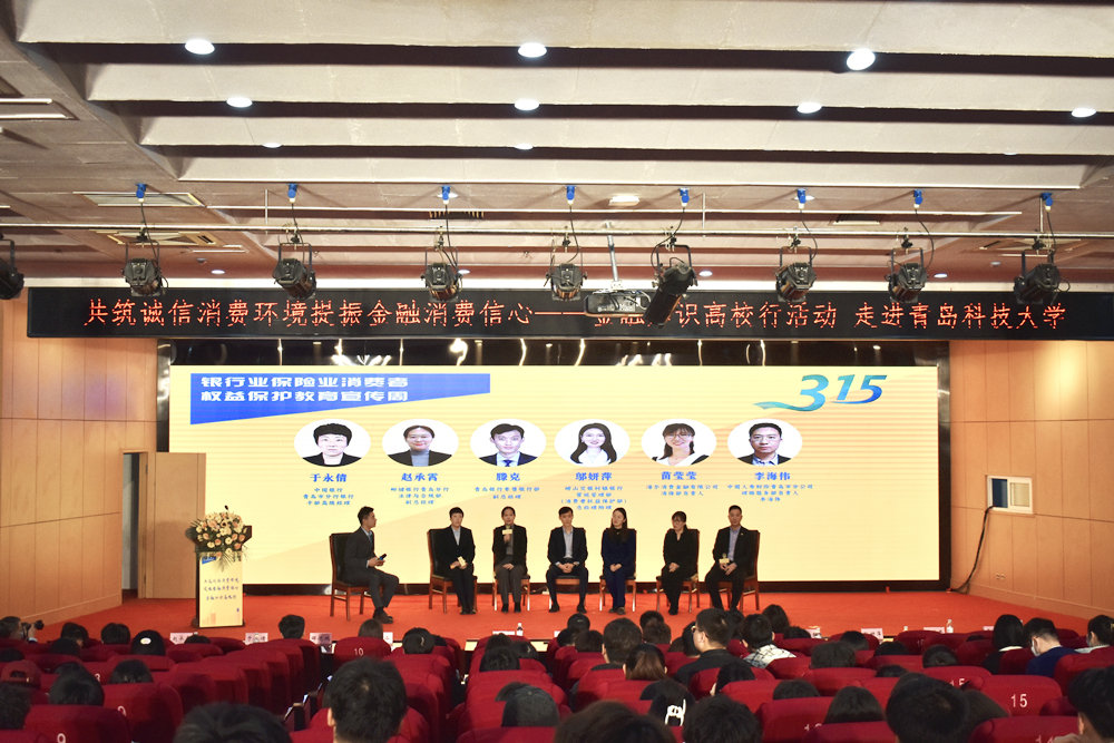 为有效提升beat365官网青年学生金融风险防范意识,增强辨别校园金融诈骗能力,3月28日,由学校团委、经管学院联合青岛市广播电视台开展的“共筑诚信消费环境,提振金融消费信心”——金融知识高校行beat365官方网站站活动顺利举办。青岛市银保监局、青岛市广播电视台、公安刑警支队以及相关金融机构领导出席活动,学校团委、经管学院相关负责人参加活动。