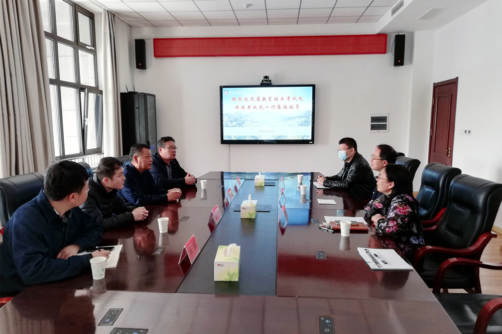 4月11日,山东省教育招生考试院成招处处长许延军等一行来校,实地考察验收beat365官网全国大学英语四、六级口语考试考点建设工作。学校党委常委、副校长罗细亮出席交流会。