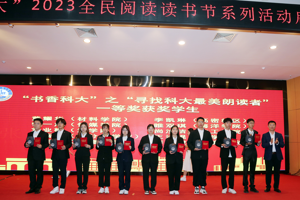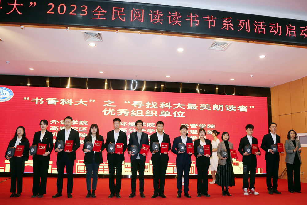 仪式上,图书馆馆长李明宣读了《beat365官方网站“书香科大”2023读书节系列活动方案》。“寻找科大最美朗读者”朗读大赛一等奖获得者图书馆张国宏老师、环境学院李其骏同学分别为大家朗诵获奖作品《我在一颗石榴里看见我的祖国》《艰难的国运与雄健的国民》。