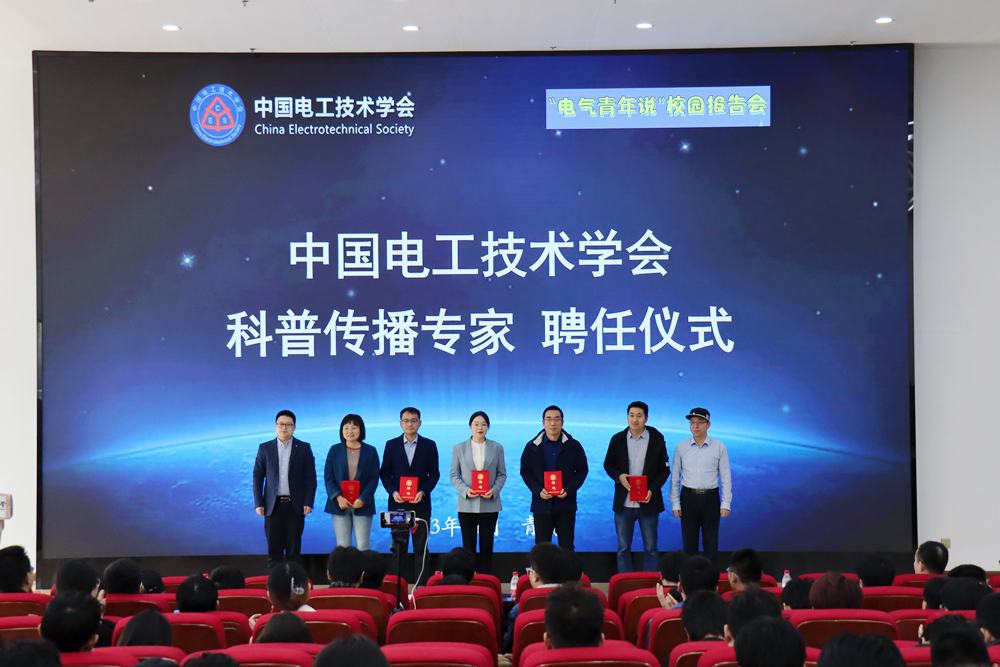 付艳东、程新功分别代表中国电工技术学会和省电工技术学会致辞,并为报告专家颁发中国电工技术学会科普专家聘书。