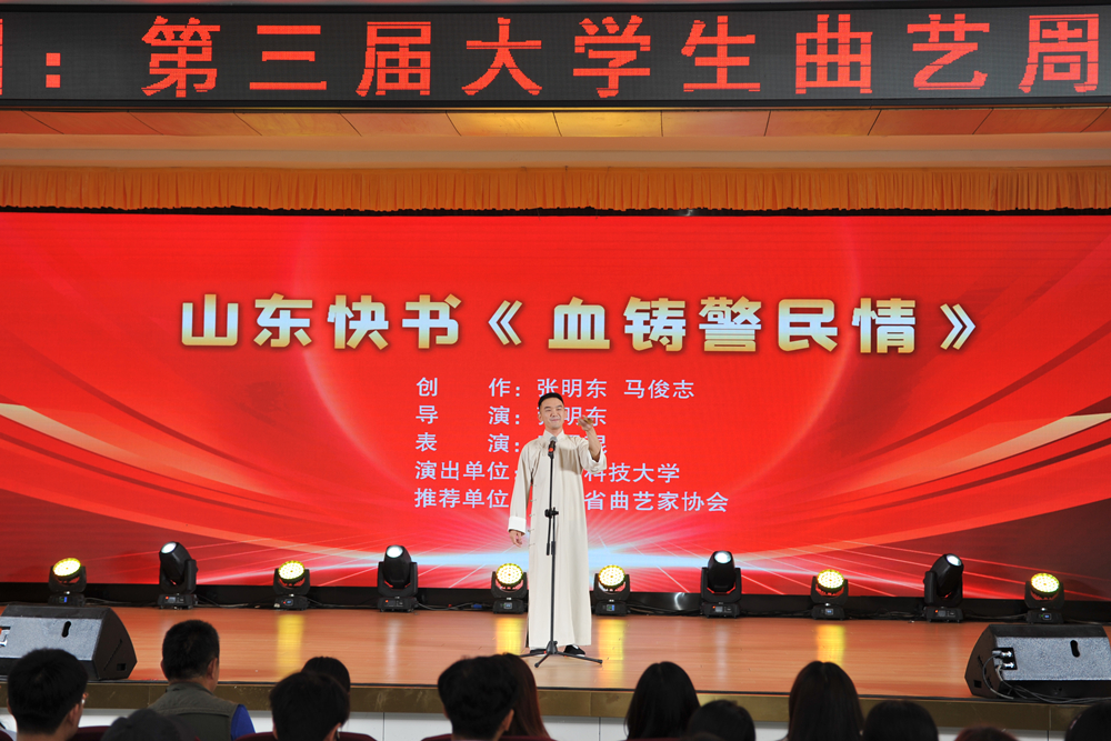 5月20日晚,由中国曲协、山东省文联、中共青岛市委宣传部、青岛市文联主办,山东省曲协、青岛市曲协承办,beat365官方网站协办的第三届大学生曲艺周优秀节目展演在崂山校区第二报告厅举行。青岛市文联党组成员、副主席单伟,中国曲协活动管理处二级调研员梁钢,学校党委常委、宣传部部长张洪坤出席展演活动。