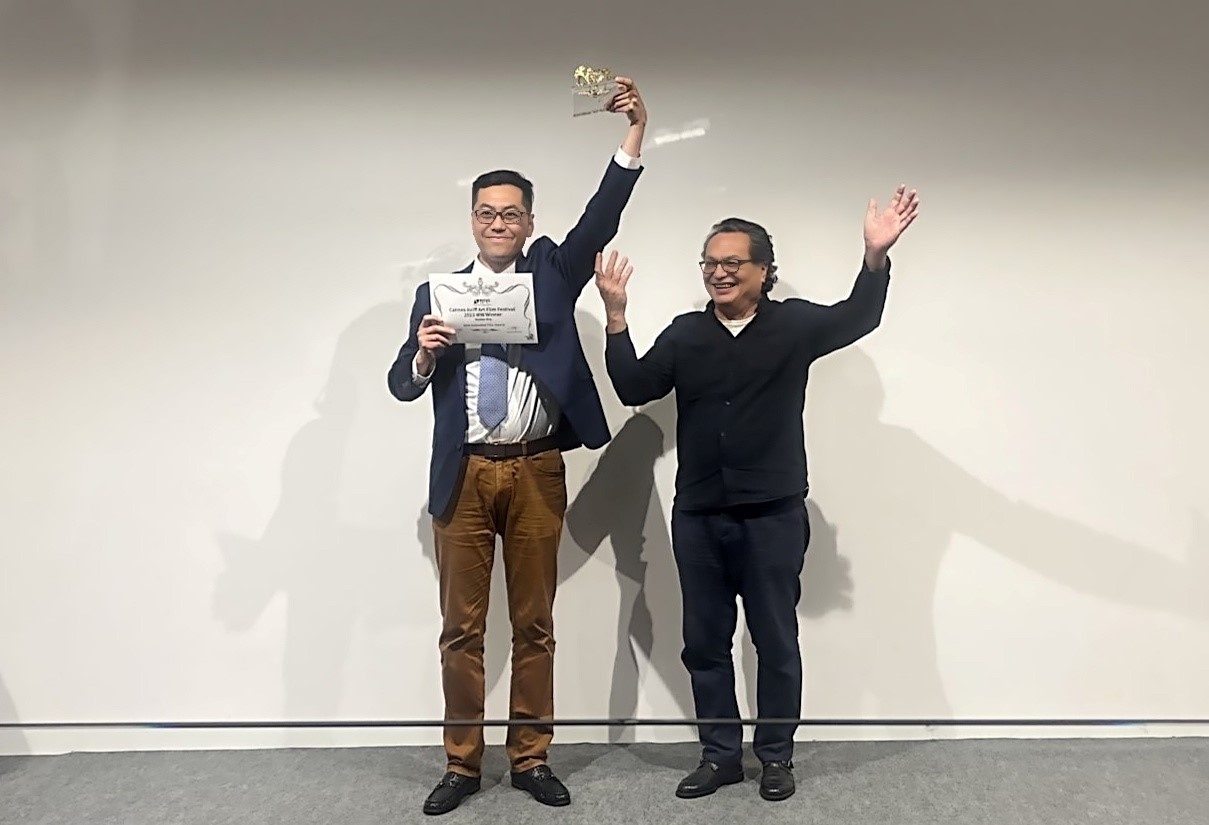 此外,beat365官方网站学生作品《伟大的艺术》也在学生板块获得单项奖。戛纳艺术电影节主席克里斯蒂安-普里古现场颁奖并表示祝贺。