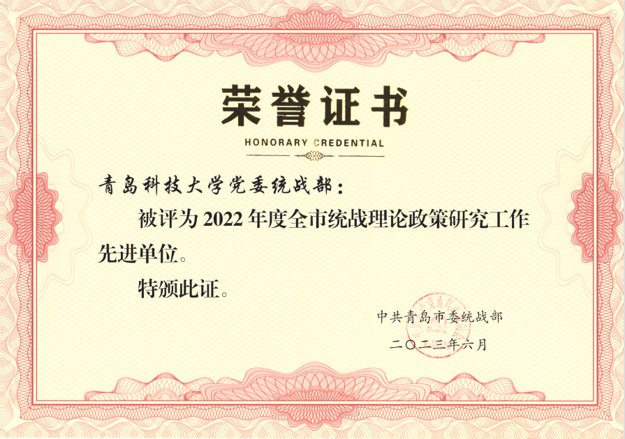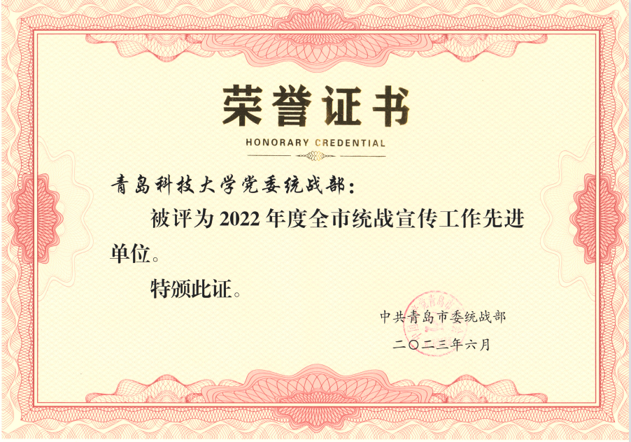 会议表扬通报了2022年度全市统战工作先进单位、先进个人和优秀成果。学校党委统战部荣获青岛市统战理论调研工作先进单位、统战宣传工作先进单位。李晓晨等主持的《我国宗教中国化评价指标体系构建研究》荣获全市统战理论政策研究优秀成果特等奖。张湘钧等主持的《一致性和多样性的辩证关系在统战实践中的具体表现与应对方法研究》荣获二等奖。郭士民等主持的《新时代统一战线增进思想共识研究》荣获三等奖。