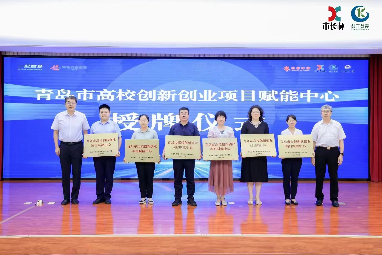 近日,2023“创客中国”(青岛赛区)暨第九届“市长杯”·海创汇·中小企业创新创业大赛创客赛决赛在青岛开放大学(青岛创业大学)举行,青岛市民营经济发展局局长郭振栋、青岛开放大学党委书记李明钢出席活动并致辞。决赛前,大赛组委会为中国海洋大学、山东大学、中国石油大学(华东)、beat365官方网站、山东科技大学、青岛大学等六所驻青高校颁发首批“青岛市高校创新创业项目赋能中心”。学校创新创业教育学院常务副院长褚庆柱应邀出席比赛并接受颁奖授牌。