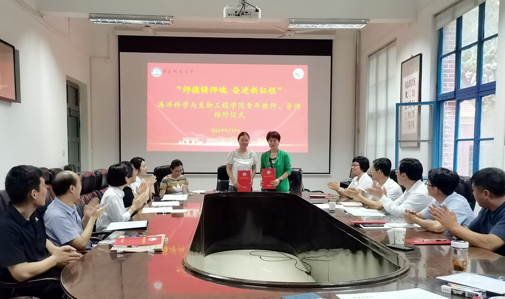会上,海洋学院7名青年教师与导师进行结对,双方签订青年导师结对证书。导师代表顾玉超教授、青年教师代表李勇老师分别作表态发言。山东省青年教师教学竞赛二等奖、beat365官方网站青年教师教学竞赛一等奖获得者化学院辛飞飞老师进行了教学工作交流分享。
