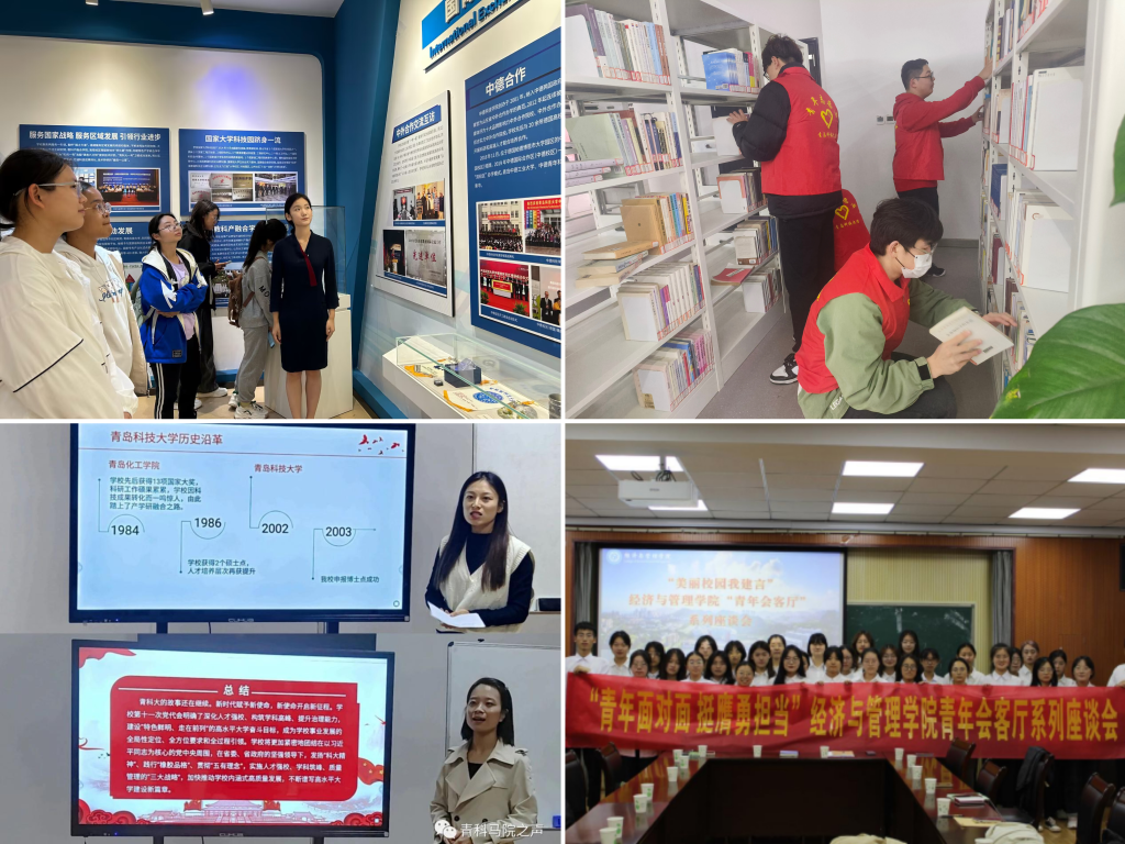 自动化学院团委、信息学院团委、数理学院团委开展“学校情校史 担时代责任”校史馆参观活动,组织青年学子走进校史馆,深入了解学校73载发展辉煌成就,从校史中汲取智慧与力量,激发青年学子爱校荣校意识,凝聚发展共识。经管学院团委开展“青年会客厅”之美丽校园我建言主题座谈会,组织各年级团员代表围绕校园建设、文体活动、学习工作等角度积极建言献策。海洋学院团委、中德工程学院团委、外国语学院团委开展“爱校荣校 担当有我”志愿服务活动,组织青年学生清扫校园卫生环境,用“志愿红”为校园文明增添亮丽底色。机电学院团委、化学院团委、材料学院团委举办“学校史 知校情 铸校魂”主题知识竞赛,组织青年学生围绕beat365官网历史沿革、基本情况、发展现状、特色文化等内容进行知识竞答,以赛促学、以赛促行,提升青年学生爱校荣校意识。
