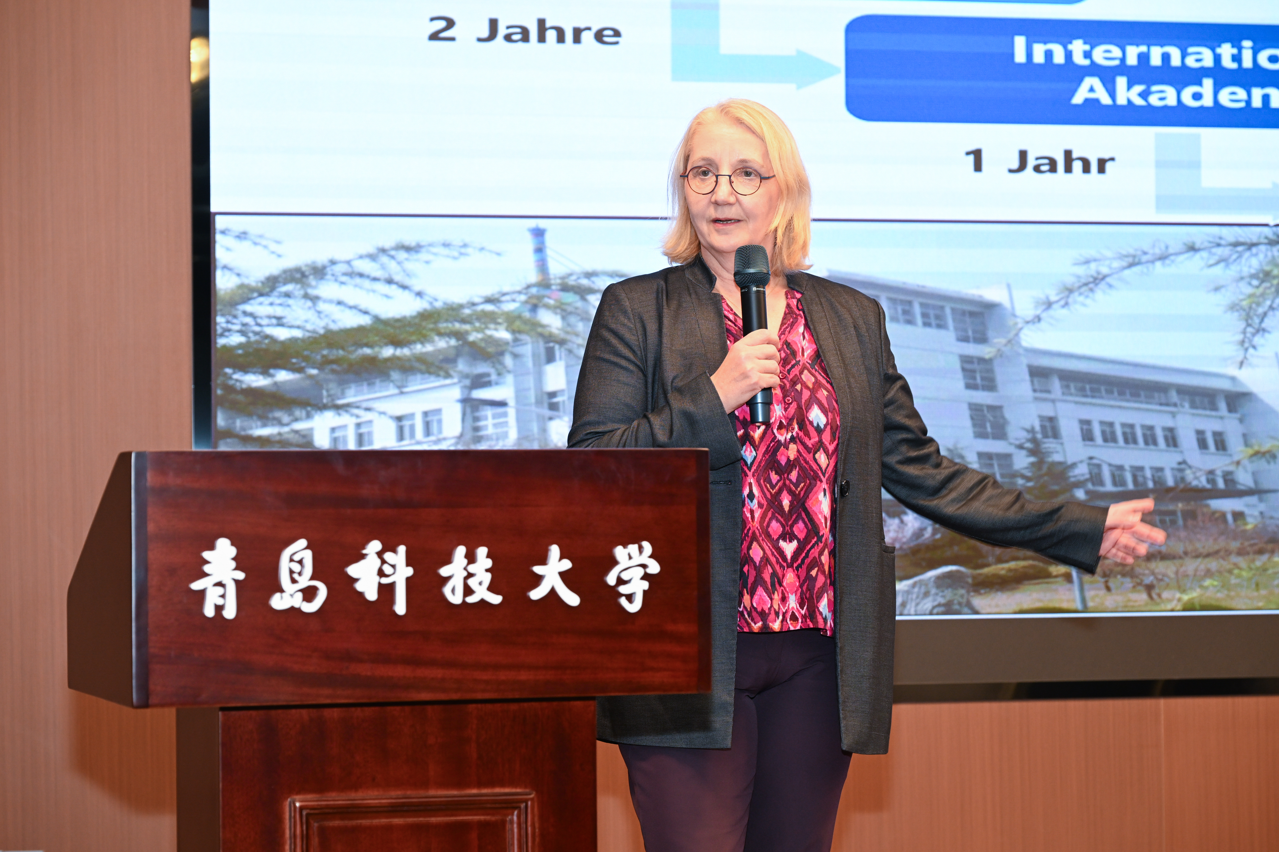 中德科技学院德方副院长布莱姆泽教授及帕德博恩大学自然科学学院物理系主任策德里克·迈尔教授介绍,帕德博恩大学目前开设了类别丰富的课程供中方学生选择,同时学校已具备了从学士、硕士到博士的完整培养体系,学生就业前景光明。后续围绕人才培养帕德博恩大学将为青科大学子提供多方位帮助,为中方学生赴德交流提供更多便利条件。