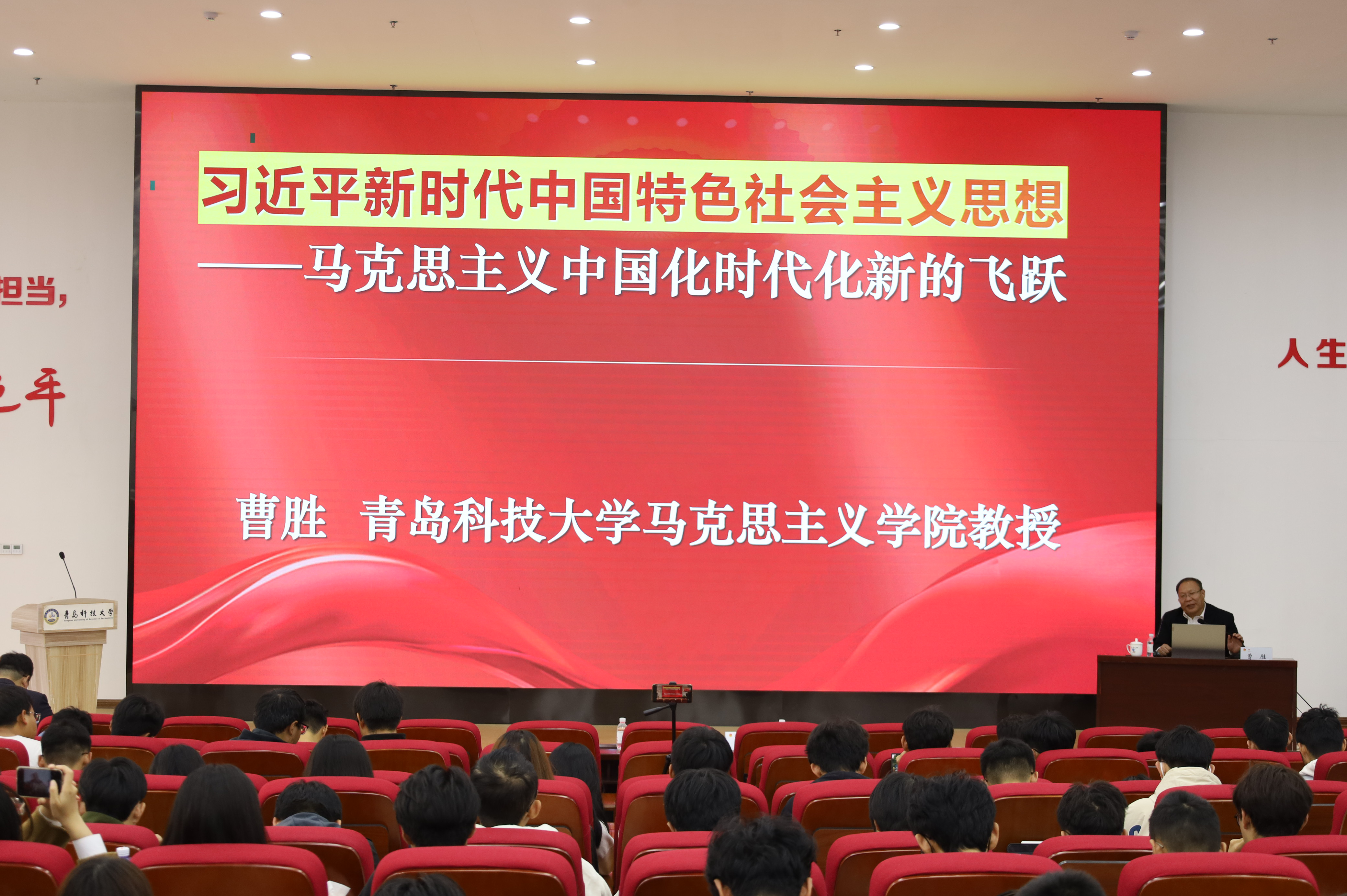 11月21日,学校“青马工程”举办习近平新时代中国特色社会主义思想专题培训会,马克思主义学院院长曹胜教授以《习近平新时代中国特色社会主义思想—马克思主义中国化时代化新的飞跃》为题,为学校2023-2024学年“青马工程”、团校学员授课。曹胜教授结合个人学习体会,为学员们深入解读了习近平新时代中国特色社会主义思想是如何创立的、回答了什么重大时代课题、主要包含哪些内容等。同时深刻阐明了应该如何把握习近平新时代中国特色社会主义思想的世界观和方法论,如何理解习近平新时代中国特色社会主义思想的历史地位,如何学好用好习近平新时代中国特色社会主义思想。曹胜教授结合工作实际,勉励学员们要用习近平新时代中国特色社会主义思想武装头脑,要在全面学习、全面把握、全面落实上下功夫,要知其言,知其意,知其所以然,更要知其所以必然,立志做“有理想、敢担当、能吃苦、肯奋斗”的新时代好青年。
