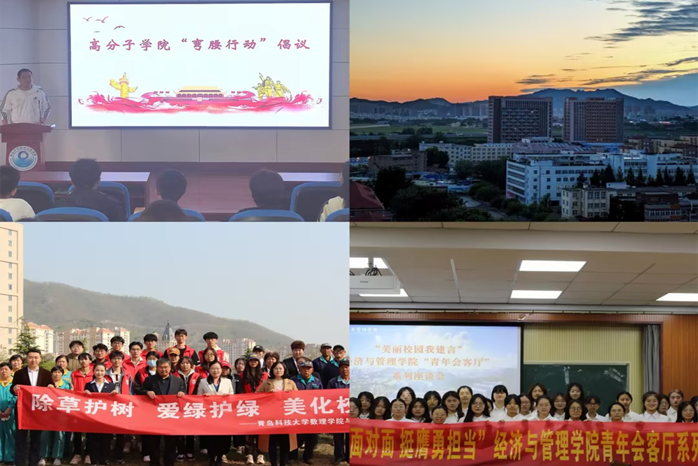 引导学生参与校园建设,树立学生主人翁意识。经济与管理学院立足“青年会客厅”开展“美丽校园我建言”主题座谈活动,学生代表从学习设施、校园环境、文体资源利用等方面积极建言献策。高分子科学与工程学院创新形式,开展“美丽青科,你我共建”弯腰行动、“学校史,知校情”主题宣讲等活动,加深了学生对校园生活的热爱。信息科学技术学院积极开展“文明学舍,志愿先行”共建宿舍环境、“光盘打卡”等实践活动,激励大家不断修身立德。化工学院、材料科学与工程学院将“美育”和“爱校荣校教育”融合,开展“美丽的校园,我的家”等主题摄影大赛,充分展现了青科大厚重的历史底蕴。数理学院开展了“弘扬志愿精神,共创美好校园”校园义工活动,鼓励同学们用自己的实际行动建设更加美好的青科校园。海洋科学与生物工程学院、高密校区组织开展了“我与青科共成长”主题征文,生动阐述大学生活的点点滴滴,抒发个人成长与体会,表达对学校和自己未来的无限憧憬和美好祝福。