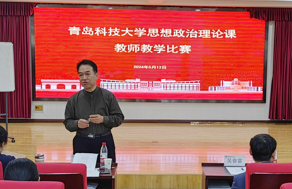 比赛特邀济南大学马克思主义学院原院长、省学校思政课分教指委主任委员文洪朝教授担任组长,山东大学马克思主义学院副院长、省学校思政课分教指委委员张路园教授,山东师范大学马克思主义学院副院长、省学校思政课分教指委委员吴春雷教授,山东科技大学马克思主义学院副院长、省学校思政课分教指委委员常春教授,省学校思政课教指委委员、青岛理工大学马克思主义学院史倩教授担任评委,学校16名思政课教师参加本次比赛。