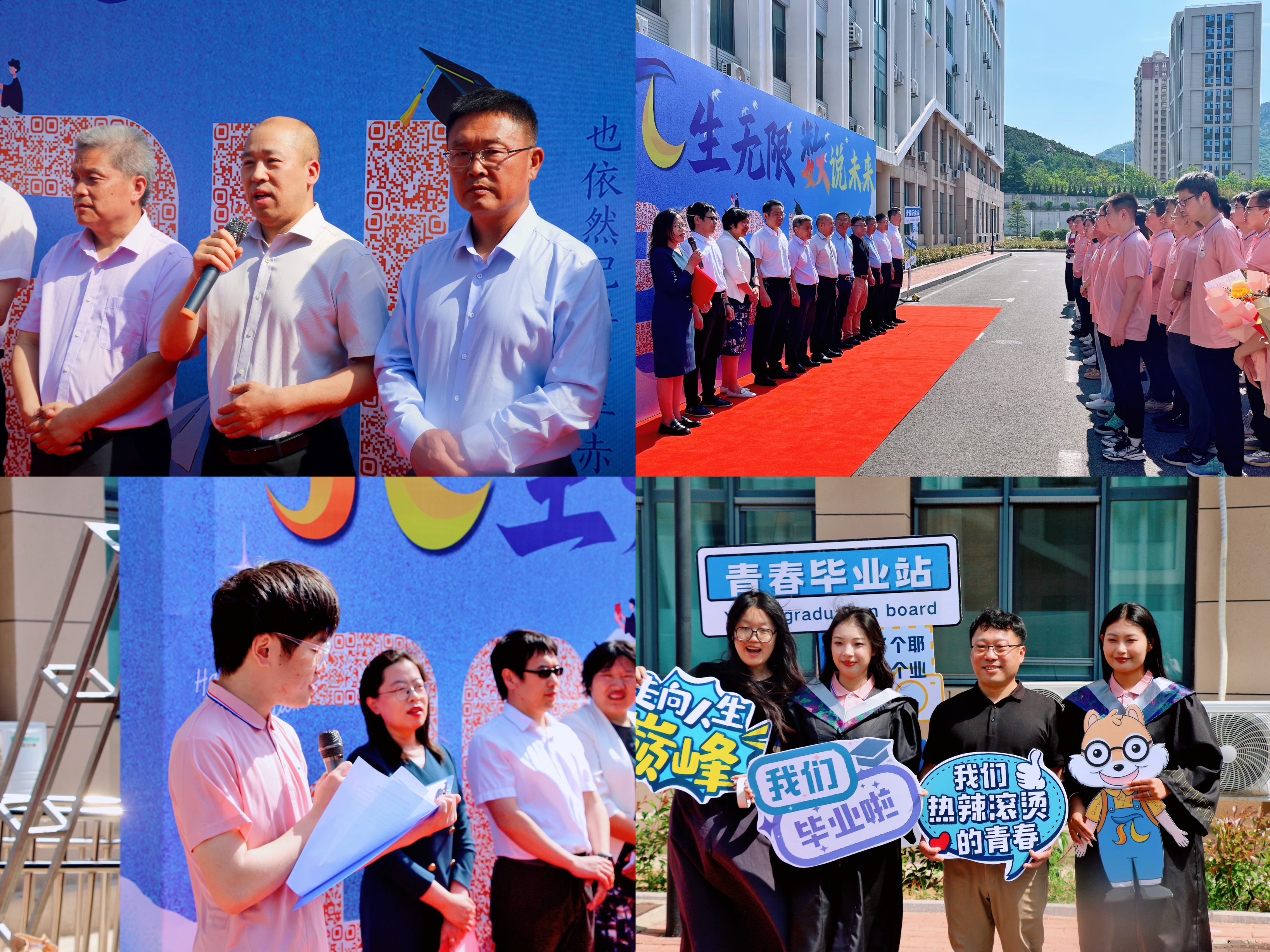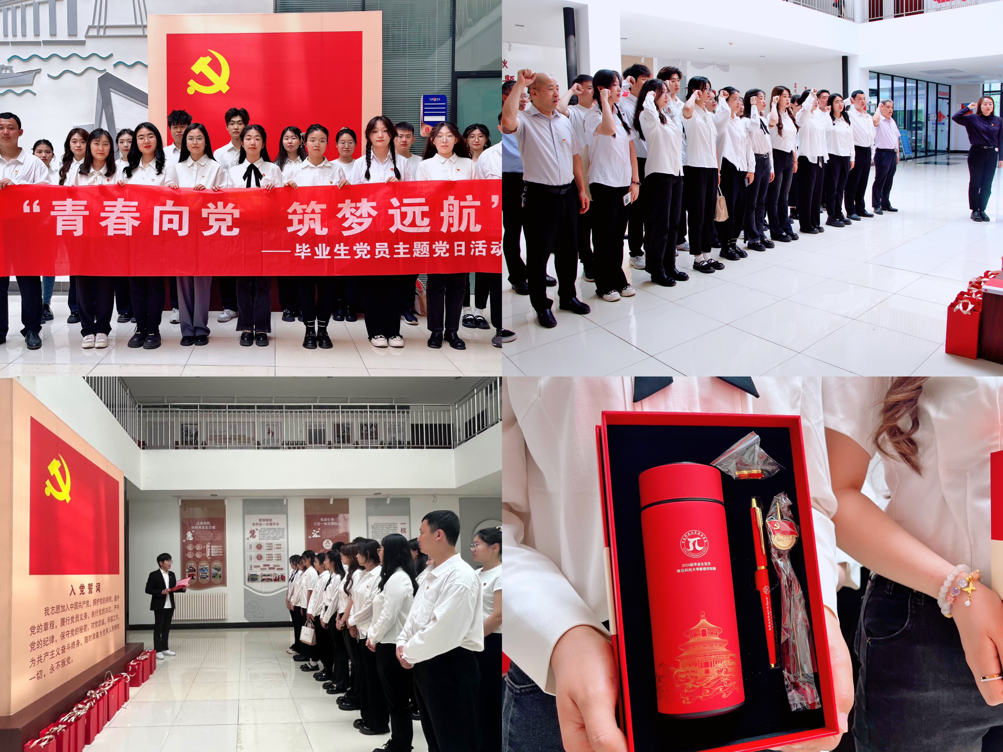 数说相遇,礼赞未来。临别之际,学院为每一位毕业生定制π系文化衫,八个主题蓄满青春能量;打造打卡景点“青春π向未来”网红墙,用创意为青春送行;定制水杯、崭新党徽,给毕业生党员送上“信仰大礼包”;举办专题交流会、开设朋π小讲堂,毕业生为学弟学妹送经验、送心得;毕业生录制对母校的深情告白与温暖祝福,生成二维码制作彩色喷绘、水晶座台,让“感恩母校”变得有声有色。