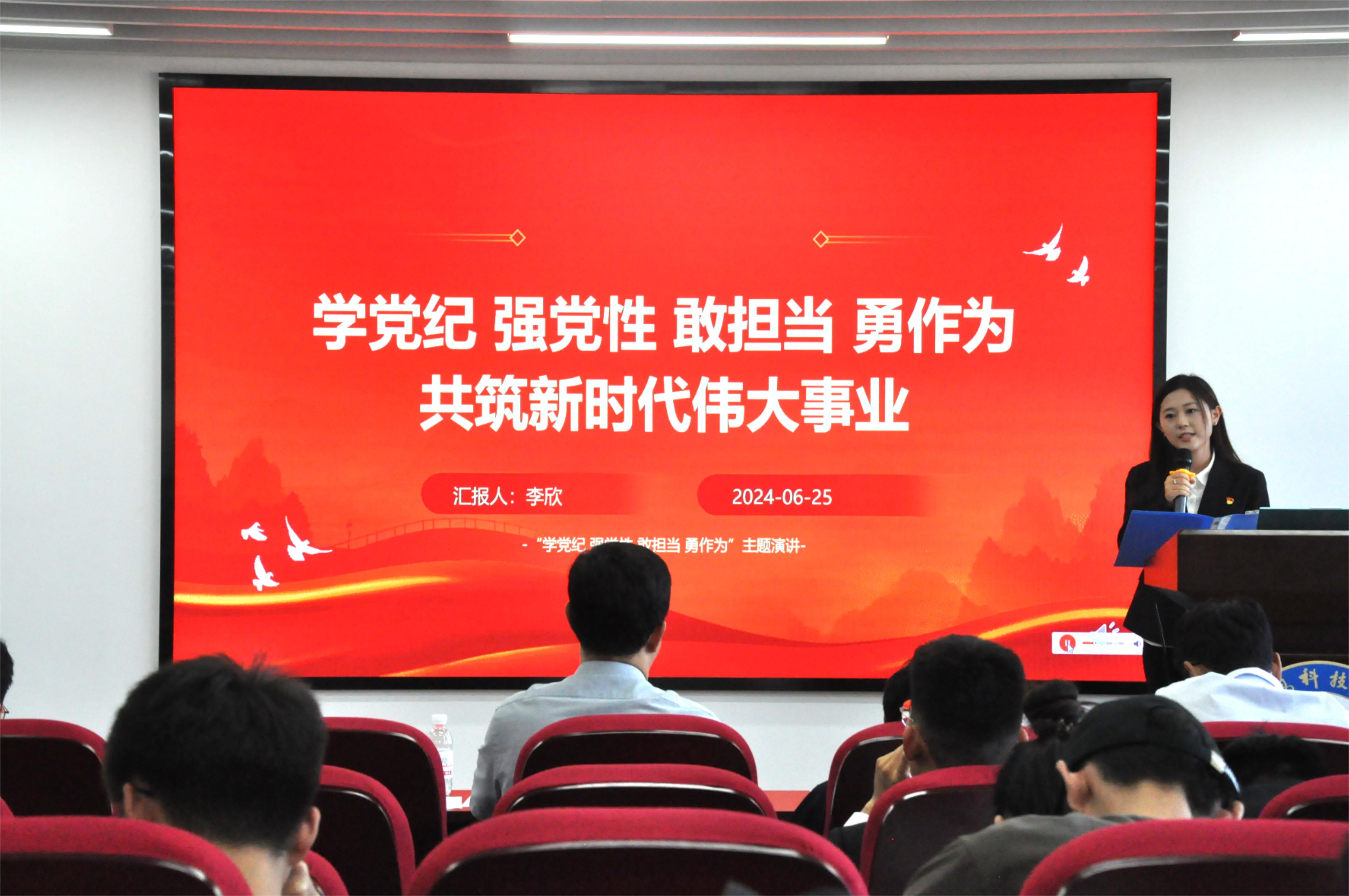 6月25日,学校“学党纪 强党性 敢担当 勇作为”主题演讲比赛决赛在化工学院CCF楼814会议室举行。党委组织部、党委学生工作部等相关单位负责人参加演讲比赛,180余名相关学院学生代表参加活动。