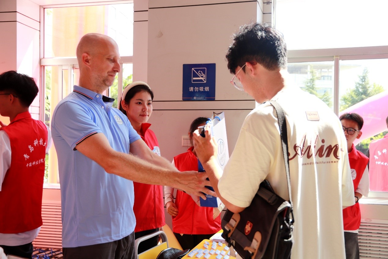 国际化育人,特色彰显。迎新活动融入国际化元素,学院特别制作“七十五载春华秋实庆华诞,筑梦中德奋发有为正当时”主题喷绘,布置迎新站点,赠送包含深情厚意的新生大礼包,以及富含传统文化韵味的床贴与寓意吉祥的门牌。现场设立“书法展示区”,新生挥毫泼墨,以笔墨传情,展现了中德科技学院深厚的文化底蕴与国际视野。