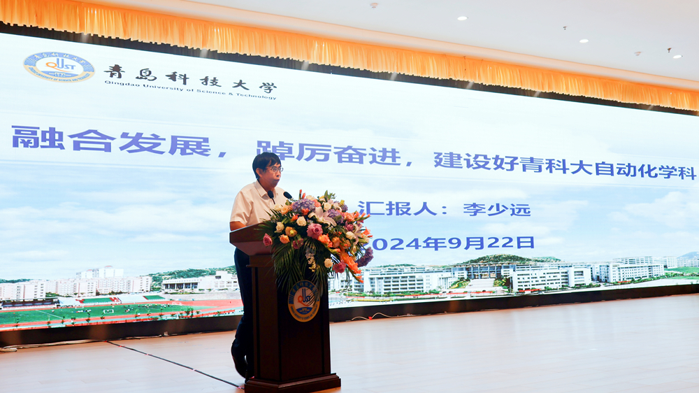 李少远作题为《融合发展,踔厉奋进,建设好青科大自动化学科》的报告,他围绕学院发展史、学院现状和学院发展规划等方面进行了全面详细介绍。他表示,希望2024级全体新生珍惜大学时光,树立远大目标,创新性学习,为学校学院发展创造新的辉煌。