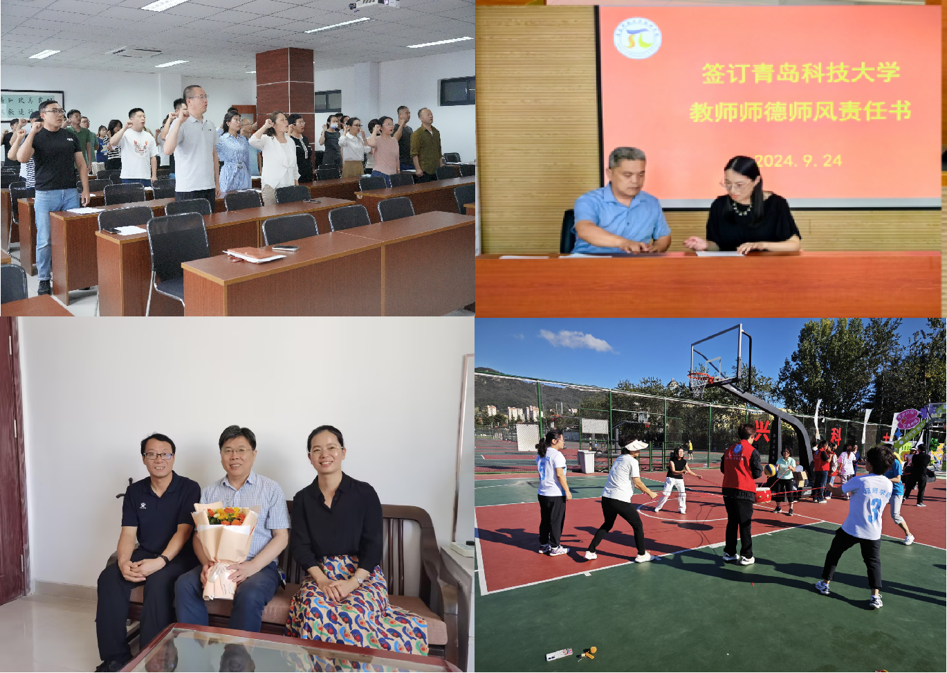 突出氛围营造,精心组织教师节庆祝活动。化工学院开展“三尺讲台献芳华 四季耕耘育桃李”教师节送祝福活动,走访慰问退休教师。自动化学院组织教师集体宣誓,强调教师在学生成长成才过程中的关键作用。经管学院组织开展学院教职工趣味运动会,在体育活动中带领老师们释放压力、凝心聚力、携手同行。数理学院组织全体教师签订《beat365官方网站教师师德师风责任书》,集中学习学校下发的《教师师德失范警示教育材料汇编》。数据科学学院开展“数智·优师”系列培训之新时代教师职业形象管理培训,从“美育”角度对教师形象管理提出指导意见。