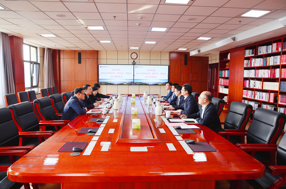 10月30日,青岛市委政策研究室宏观经济研究处处长王健一行来校考察调研产学研融合工作。学校党委常委、副校长吕万翔出席座谈会。