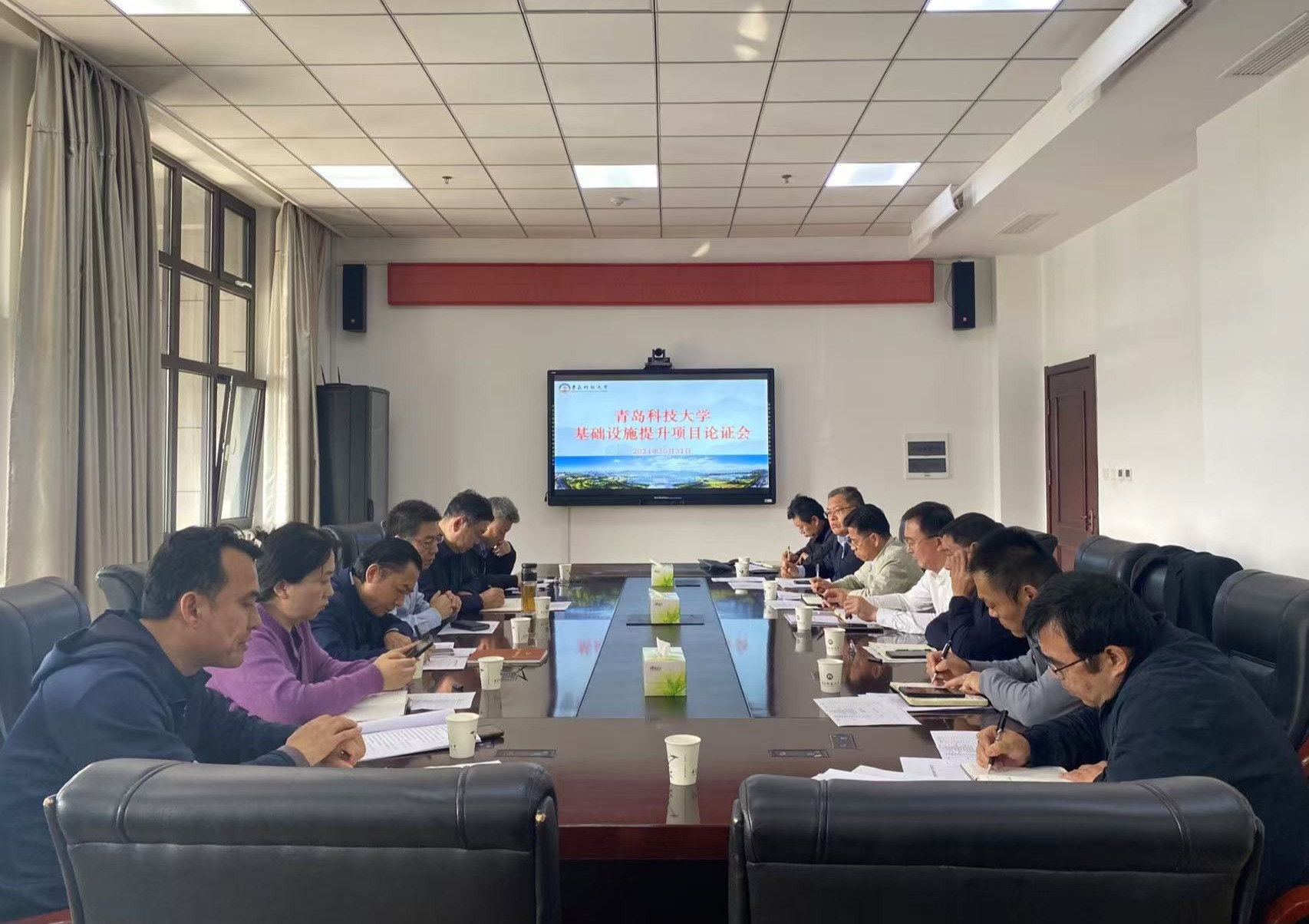 10月31日上午,学校基础设施提升项目论证会在崂山校区综合服务楼2015会议室召开。党委常委、副校长吕万翔出席会议并讲话,财务处处长刘天真主持会议。