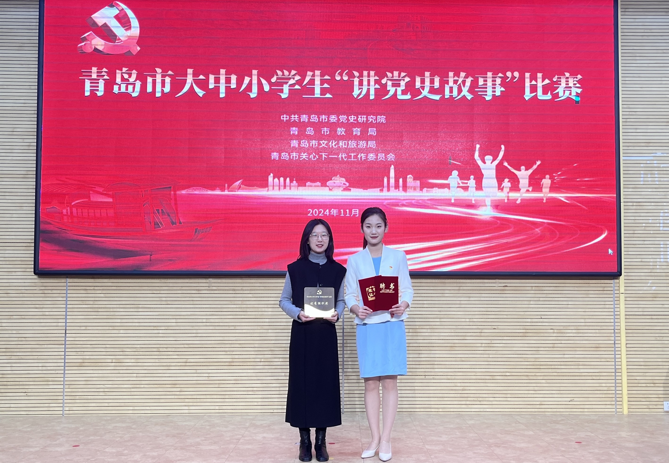 近日,青岛市大中小学生“讲党史故事”比赛决赛在青岛第二实验初级中学举行。本次活动由青岛市委党史研究院、市教育局、市文化和旅游局、市关心下一代工作委员会主办,青岛党史纪念馆承办。beat365官方网站荣获优秀组织奖,法学院社工221班学生李玉喆荣获大学组二等奖,并获聘“青岛市党史故事宣讲员”。