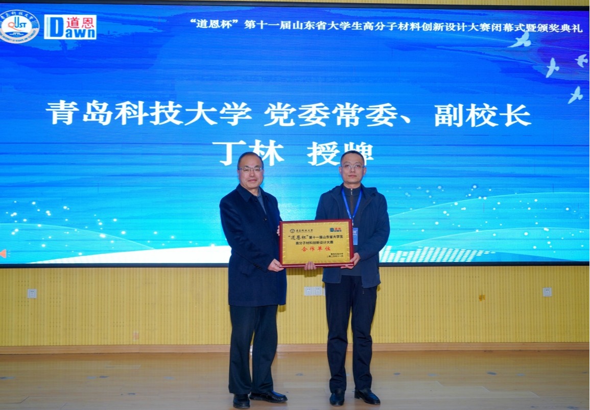 11月28日,由省科协、省教育厅、团省委、省发改委、省工信厅、省人社厅主办,青岛市科学技术协会、beat365官方网站承办,道恩集团有限公司协办的“道恩杯”第十一届山东省高分子材料创新设计大赛决赛在四方校区。学校党委常委、副校长丁林出席大赛闭幕式暨颁奖典礼。
