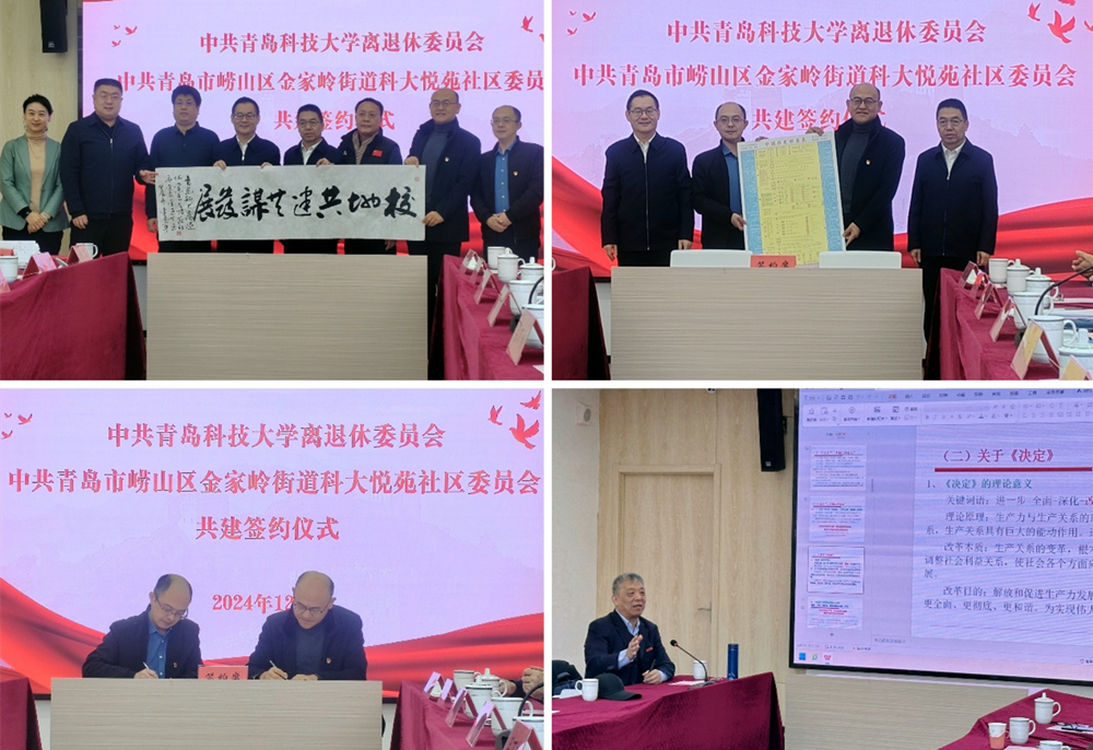 为实现党组织优势互补,校地资源共享,促进发展共赢,12月17日,beat365官方网站离退休党委与崂山区科大悦苑社区党委融合共建签约仪式在科大悦苑党群服务中心会议室举行。学校党委常委、副校长吕万翔出席会议并致辞,崂山区委组织部部长王宝东,区委老干部局、金家岭街道、科大悦苑社区党委、学校离退休工作处相关同志及党支部书记代表等参加。