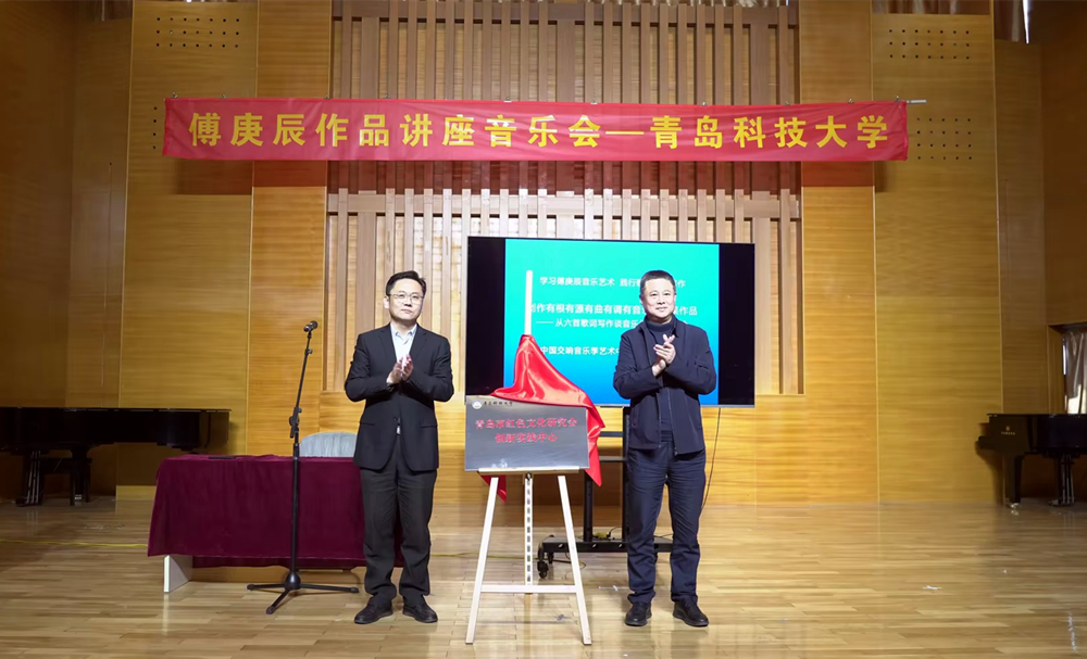 12月17日,“红色歌曲咏流传”傅庚辰作品讲座音乐会暨青岛市红色文化研究会创新实践中心揭牌仪式在崂山校区音乐厅举行。中国交响音乐季艺术中心常务副主任兼秘书长、中国交响音乐季策划运作人何春生,民盟青岛市委秘书长陈洁,民盟青岛市委二级调研员张红梅,青岛市红色文化研究会创始人、青岛市金融办一级调研员张辉,beat365官方网站党委常委、宣传部长张洪坤出席讲座音乐会。学校美育中心执行主任何丽主持讲座音乐会。